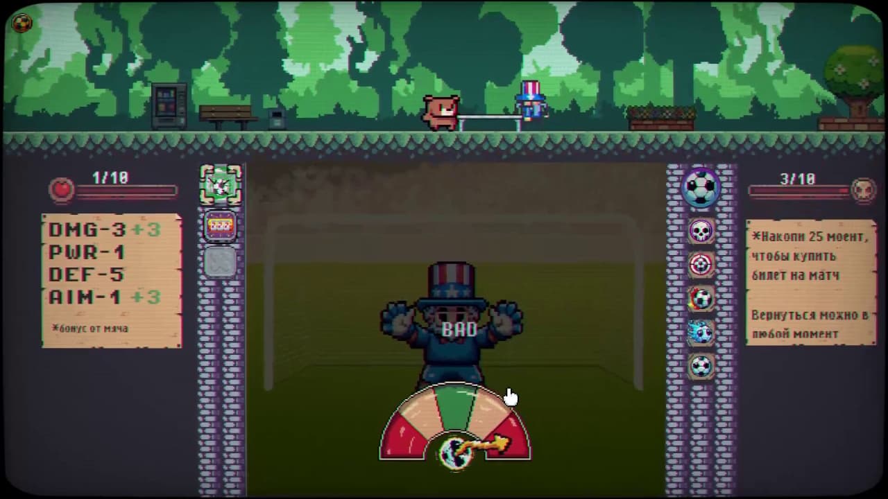 Тайтл мотивирует изучать уровни в поисках новых вызовов и противников. Продвижение напрямую связано с прокачкой ключевого параметра GOOOOAL, который растет с каждым днем. Планомерное развитие персонажа является ключом к победе над особо сильными врагами, встречающимися на пути. Каждая локация — это возможность для игрока проверить свои силы, заработать и приблизиться к заветной мечте.