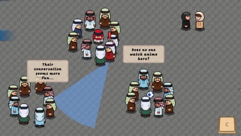 Успех зависит от умения маневрировать в хаосе, чтобы покинуть саудовскую деревню незамеченным. В Azooma Escape главную угрозу представляют члены семьи с тарелками еды, а их маршруты и привычки формируют паттерны для изучения. Протагонист может прятаться под столами или приседать за мебелью, используя царящий на празднике хаос в качестве прикрытия. Эти действия необходимы для перемещения по деревне, превращенной хозяевами в череду бдительных ловушек.