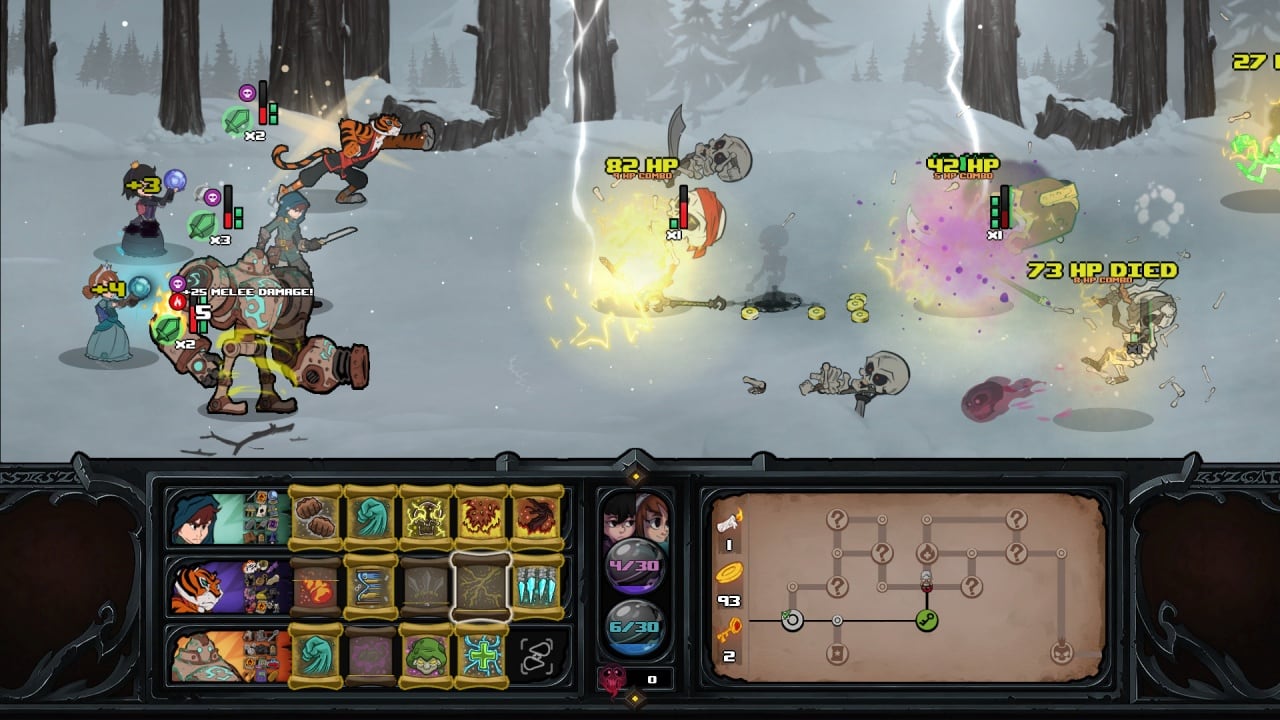 Воин добивает слабых врагов и может принимать на себя часть урона. Он также полезен против простых скелетов, но абсолютно ненужен в борьбе против бронированных противников. Убийца может быстро перемещаться, наносить серию комбо-ударов, оглушать противника. Монах может наносить серию ударов, оглушать, принимать много урона. Все три персонажа отлично гармонизирует в первой половине игры, но практически забываются во второй, где мы сможем открыть новых чемпионов.