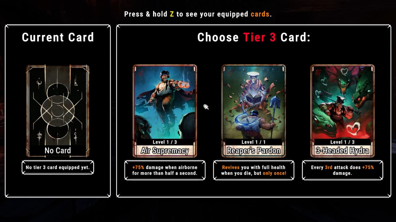 Чтобы глубже настроить боевой стиль, можно использовать карты Таро, дающие разнообразные усиления и мощные комбинации, дополняющие различные тактики и открывающие новые возможности в бою. Навигация по полю боя осуществляется с помощью ботинок для мультипрыжка, призрачной лопаты и расположенных на локации трамплинов, позволяющих поддерживать импульс и уворачиваться от выпадов. Игра поощряет определенные стили ведения боя, награждая за зрелищные расправы и сложные трюки ощутимыми бонусами. Арены населяет множество типов противников, обладающих уникальными сильными и слабыми сторонами, а также особой моделью поведения.