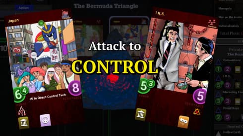 ILLUMINATI предлагает игровой процесс, посвященный управлению тайной организацией для установления мирового господства с помощью пошаговых карточных механик. Геймеры расширяют свою сферу влияния, подчиняя себе более 275 различных сообществ, например, Ф.Б.Р. или Людей в черном. Каждая захваченная группировка дарует больше могущества, особые умения и повышает сопротивляемость враждебным фракциям. Проект предусматривает партии против 3 компьютерных оппонентов или кроссплатформенные матчи для 4 человек, борющихся за абсолютную власть.