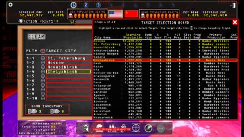 Bombergeddon моделирует ядерное противостояние высокого уровня между США и СССР в 1950-х годах. Игрок командует эскадрильями бомбардировщиков, преследуя цель нанести максимальный процент потерь среди населения 50 крупнейших городов противника. Движок тайтла просчитывает последствия этих действий, включая поражающие факторы взрыва, немедленное и долгосрочное радиационное заражение, а также последующий голод.