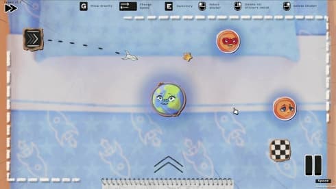 - Управление кораблем с помощью уникальных гравитационных наклеек.