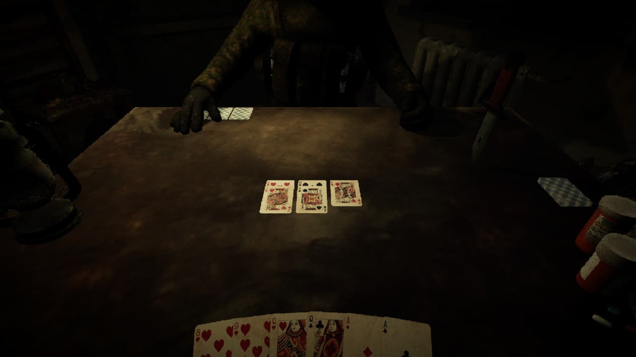 Deckline RUS v Build 18412453 Новая версия Полная версия Последняя Дата выхода 7 мая. 2025 Разработчик KREIDPIX Жанр Стратегии, Экшены, Инди, Симуляторы Очень положительные на основе 254 обзоров в Steam 86% Обновлено 19 июня 2025, 16:59 Список изменений Deckline помещает игрока в положение окруженного солдата с закончившимися боеприпасами. Командование оставило отряд, лишив его возможности на спасение и заставив группу принять неизбежность смерти. Бойцы собираются для партии в Дурака, чтобы отвлечься от происходящего в зоне конфликта 1990-х годов. Эта карточная игра становится последним актом проявления человечности перед финалом. В Deckline геймплей строится на колоде из 36 карт, где одна масть выступает козырной. Каждый боец получает по 6 карт и вступает в череду атак и защиты. Атакующий выкладывает одну или несколько карт одного достоинства, которые обороняющийся должен побить старшей картой той же масти или козырем. Тот, кто не может отразить нападение, забирает все выложенные на стол карты, продолжая свое участие в партии. Задача — первым избавиться от всех карт на руке. Структура проекта включает сюжетный режим с несколькими различными финалами, зависящими от действий игрока. Также доступен бесконечный соревновательный режим с системой очков и глобальной таблицей лидеров. Случайные механики меняют необходимую тактику от одного поединка к другому. Ключевые элементы последней карточной партии Сюжетная кампания с несколькими вариантами исхода. Бесконечный режим с глобальной таблицей рекордов. Игровой процесс, основанный на правилах карточного Дурака. Случайные события, вносящие разнообразие в каждую партию. Мрачная атмосфера военного конфликта эпохи 90-х. Скачать торрент Скриншоты Показать больше Видео из игры Скачать БЕЗ торрента прямая ссылка через uTorria Альтернативные раздачи Прямые ссылки Облачные хранилища v Build 18412453 216 МБ Показать Системные требования ОС: Windows 10, 11 (64-bit) Процессор: intel core i3-2100 3.10 Оперативная память: 400 МБ Видеокарта: Nvidia GeForce GTX 550 ATI Место на диске: 300 МБ Психологический хоррор, Карточная игра, Настольная игра, Хорроры, От первого лица, Казуальная, Головоломка, Мрачная, Психологическая, Триллер, Построение колоды