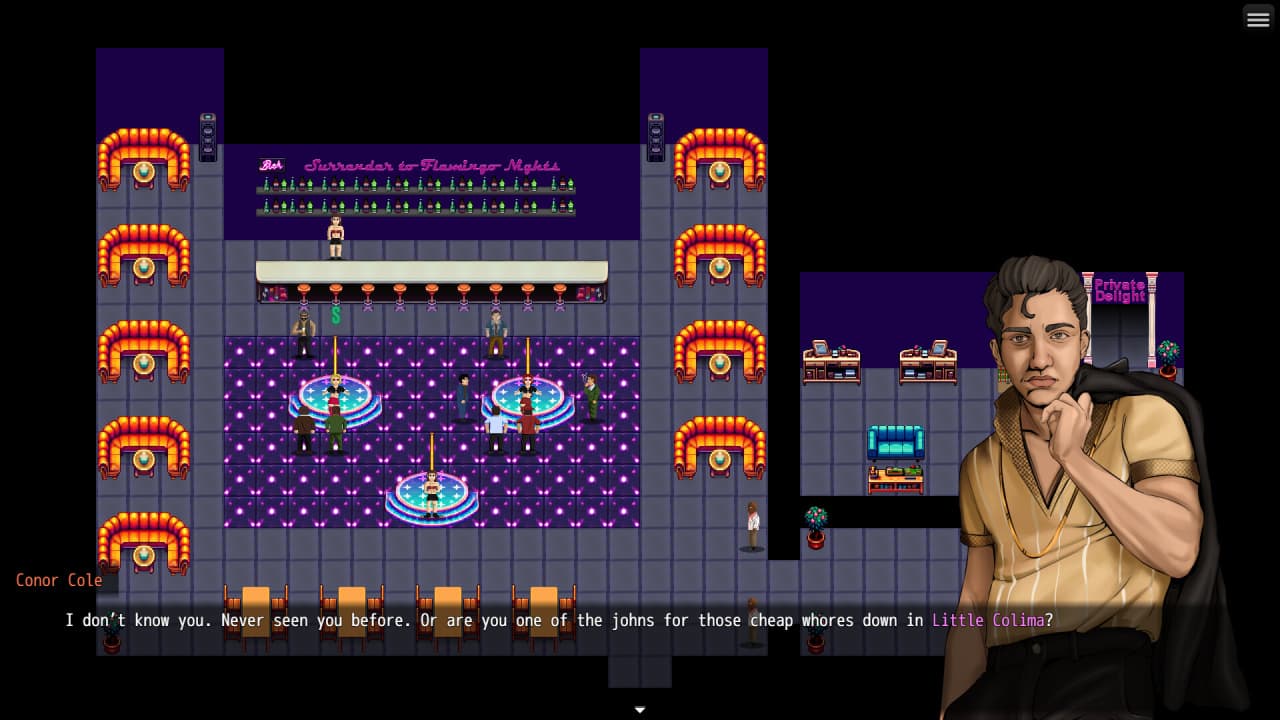 Ballad of Bullets v Demo Новая версия Полная версия Последняя Дата выхода Скоро выйдет Разработчик Attart Originals Жанр Визуальная новелла, Инди, RPG Обновлено 20 июня 2025, 03:10 Список изменений Ballad of Bullets переносит игрока в город Роуэлл образца 1984 года. Уволенный из армии мужчина возвращается домой после смерти отца, но цель визита — не похороны. Ему предстоит встреча с братом-алкоголиком, пропавшей сестрой и наследием криминальных связей родителя. Его решения определят дальнейшую судьбу, пока он погружается в мир преступности и предательства. Сюжет тайтла Ballad of Bullets сосредоточен на взрослых взаимоотношениях и последствиях интимной близости. Геймерам предстоит выстраивать непростые связи, заключать союзы по необходимости или предаваться моментам страсти и нежности. Эти контакты раскрывают тайны, способные разрушить жизнь протагониста и окружающих его людей. В этом городе у любого желания есть своя цена, ведь каждая тесная привязанность несёт в себе угрозу измены. Игровой процесс разворачивается в открытом мире с уникальными районами для изучения и заданиями, которые предстоит найти. Боевая система представляет собой пошаговую тактику со способностями оружия и статусными эффектами. Проект содержит материалы для взрослых, включая насилие, сексуальные сцены и употребление веществ, поэтому игра рассчитана на аудиторию старше 18 лет. Что скрывают неоновые огни Роуэлла Тактические бои: Классическая пошаговая система с уникальными для каждого оружия приёмами. Живой мир: Динамическая смена времени суток и погоды влияет на город и его обитателей. Нелинейное повествование: Разветвлённый сюжет с драматическими арками персонажей. Свобода исследования: Открытые районы города, скрытые задания и погребённые секреты. Скачать торрент Скриншоты Показать больше Видео из игры Скачать БЕЗ торрента прямая ссылка через uTorria Альтернативные раздачи Прямые ссылки Облачные хранилища v Demo 357 МБ Показать Системные требования ОС: Windows 8, 10, 11 Процессор: Intel Core i3 Оперативная память: 4 ГБ Видеокарта: Intel HD Graphics 4000 Место на диске: 2 ГБ Глубокий сюжет, Нагота, Point and click, 80-е, Пошаговые сражения, Открытый мир, Повествовательная, Криминал, Сложная, Юмор, Подземелья, Пиксельная графика, Японская RPG, Игры с геймпадом