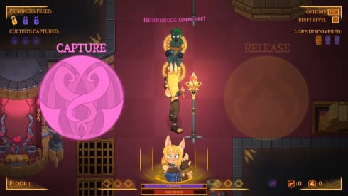 Игровой процесс строится на системе передвижения по клеткам для тщательного исследования локаций и динамичных механиках hack-and-slash в реальном времени для частых боевых столкновений. Прохождение этого ролевого экшена требует от игрока решения разнообразных головоломок и выполнения встроенных мини-заданий, которые необходимы для достижения целей, вроде освобождения других пленников из оков или обезвреживания изощренных ловушек. Разбросанные по миру записки с лором постепенно раскрывают подробности о странных правилах вселенной и ее колоритных обитателях.