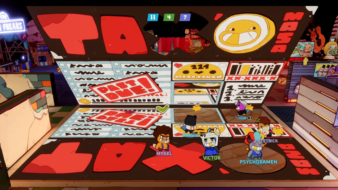 Геймеры в тайтле Eat the Rich: Greed Games зарабатывают валюту для Пауэр-апов и других преимуществ, участвуя в кооперативных мини-играх. В любое время соперники могут вступать в прямой конфликт друг с другом в любой точке карты. Используя разнообразные предметы и оружие, персонажи сражаются за тактическое превосходство в борьбе за выживание. Успешные атаки заставляют оппонентов ронять накопленные Пенни, давая возможность другим подобрать их и мгновенно изменить расстановку сил.