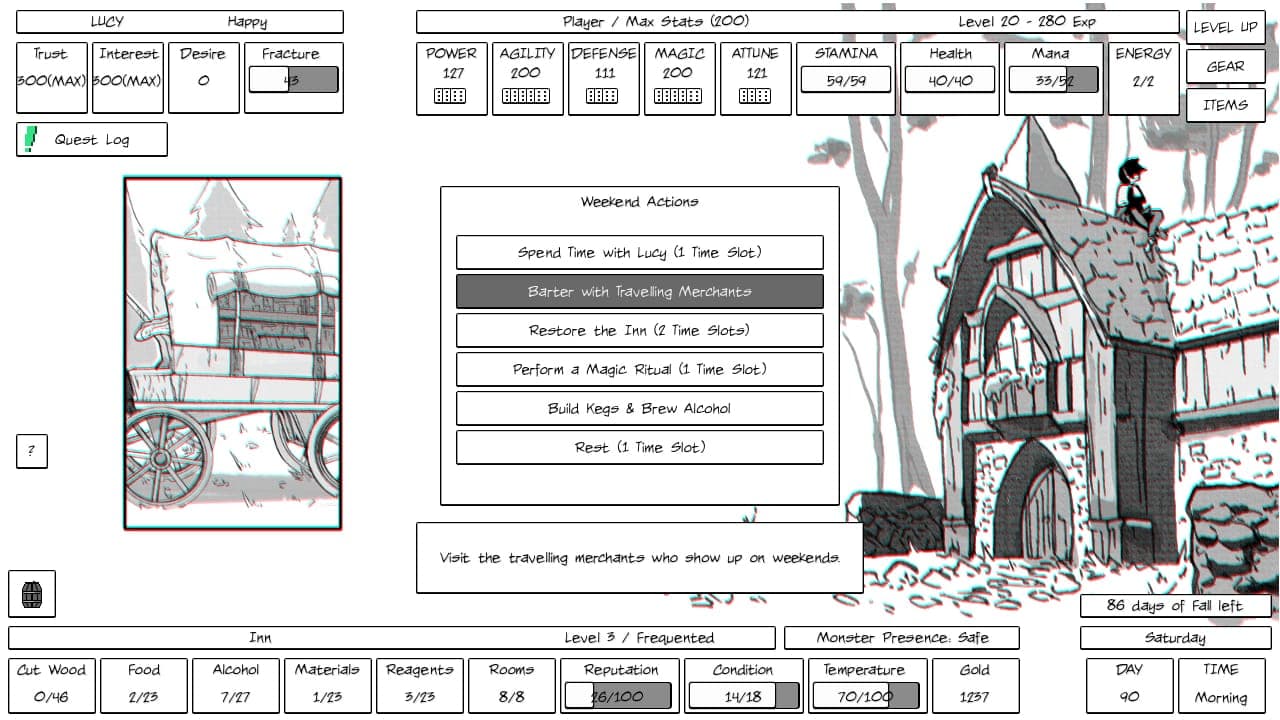 Finding Color in the Ashes v 3.02 Новая версия Ранний Доступ Последняя версия Дата выхода 2025 Разработчик MooncatcherStudios Жанр Обновлено 25 июня 2025, 16:51 Список изменений Finding Color in the Ashes вовлекает игрока в восстановление разрушенной таверны и общение с ведьмой по имени Люси. Основа процесса построена на управлении временем, где сутки разделены на четыре периода: утро, день, вечер и ночь. На выходных появляются особые события, меняющие привычный распорядок дел. Все приключение охватывает один год и начинается с летнего сезона. Каждое время года длится около 90 дней и предлагает собственные механики. Центральная задача в Finding Color in the Ashes — зачистка окрестностей от монстров. Эта миссия требует экипировать персонажа оружием, броней и магией для использования в бою. Сражения происходят в пошаговом режиме, где исход действий решают броски кубиков. Для противостояний приобретается разнообразное вооружение и защитная экипировка. Эта игра также позволяет изучать и улучшать набор заклинаний для борьбы с противниками. Основные занятия для управляющего таверной: Восстановление и улучшение гостиницы по собственному усмотрению. Защита территории от монстров в пошаговых битвах. Общение с ведьмой Люси и другими персонажами. Создание зелий и развитие уникальных способностей. Управление дневным циклом для максимальной эффективности. Очки опыта начисляются за множество игровых действий. К таким активностям относятся беседы с Люси или постояльцами таверны, изготовление зелий и битвы с монстрами в регионе. Накопленные баллы расходуются на открытие умений, которые повышают боевую эффективность или позволяют вносить материальные изменения в заведение. Прокачка также предоставляет доступ к изучению дополнительных заклинаний с течением времени. Скачать торрент Скриншоты Скачать БЕЗ торрента прямая ссылка через uTorria Альтернативные раздачи Прямые ссылки Облачные хранилища v 3.02 334 МБ Показать Системные требования ОС: 7, 8, 10, 11 Процессор: Dual Core 2.4 GHz Оперативная память: 2 ГБ Видеокарта: 2 ГБ Нагота