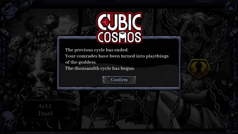 Cubic Cosmos бросает бойцов в смертельное состязание, организованное богиней. Основная задача — разорвать бесконечный цикл испытаний. Игровой процесс совмещает составление колоды в жанре roguelike с пошаговой тактикой, содержащей элементы tower defense. Геймеры формируют армию пешек и выставляют их на поле боя для противостояния вражеским силам. Выживание зависит от расстановки юнитов и грамотного применения уникальной карточной колоды, а провал превращает персонажа в забаву для божества.