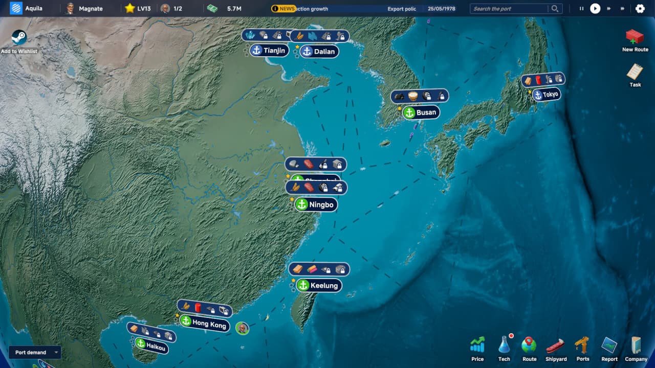Грамотные решения и точное распределение ресурсов напрямую определяют рентабельность предприятия. Механики тайтла требуют детального анализа спроса и предложения в многочисленных портах для построения наиболее эффективных и доходных морских путей. Игроки выбирают между двумя основными типами судов: настраиваемыми грузовыми кораблями и стандартизированными контейнеровозами, где каждый тип обладает явными операционными преимуществами. Эффективность флота зависит от оптимизации маршрута и скорости отдельных судов для максимизации прибыли.