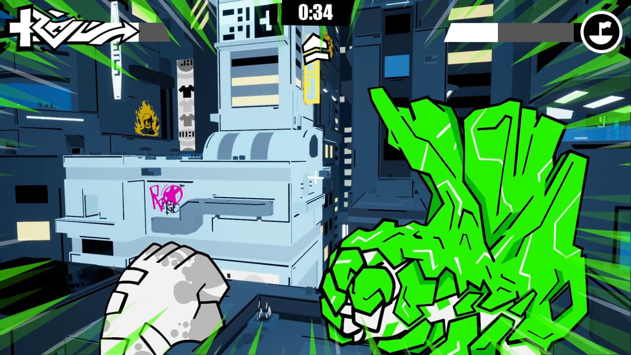 Перемещение является ключевым элементом проекта, в основе которого лежит физическая модель, рассчитанная на скоростной паркур. Персонаж передвигается по трехмерному миру с помощью набора из 5 уникальных умений, включая возможность оседлать взрывную волну для ускорения или карабкаться по стенам зданий. Эти навыки можно прокачивать и сочетать друг с другом для получения синергетического эффекта, обеспечивая плавное передвижение по земле и воздуху. Визуальный стиль сочетает нарисованных от руки двухмерных персонажей и спецэффекты с трехмерным окружением, создавая стилистический контраст.