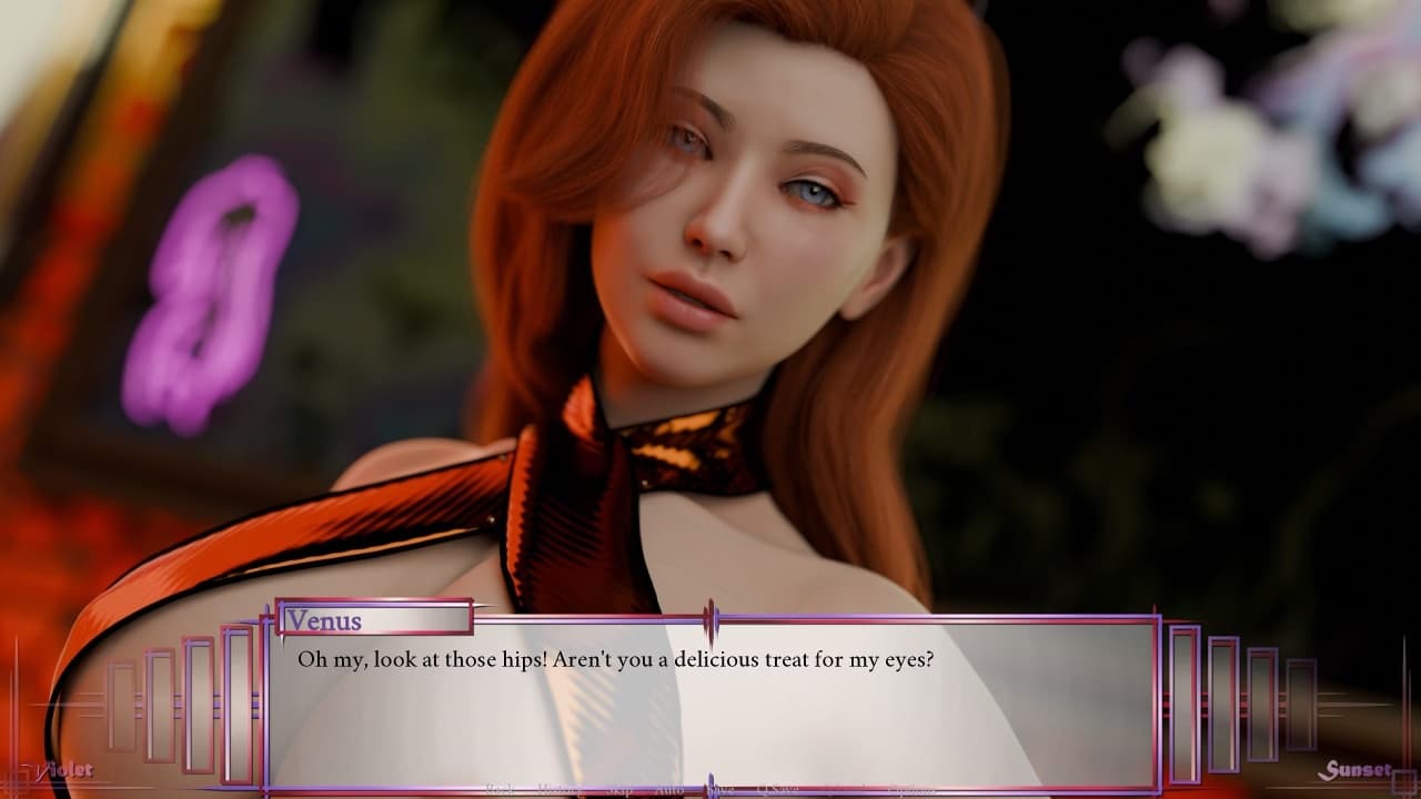 Геймплей в Violet Sunset знакомит с пассажирами группами по 3 человека из 9 душ, доступных за поездку. Игроку необходимо общаться с персонажами, чтобы узнать их истории и причины вынесения приговора. Такие диалоги позволяют завязывать дружбу, формировать привязанности и даже вступать в романтические отношения. Глубина связи с персонажем определяет, какой объём личных сведений о своей земной жизни он раскроет.