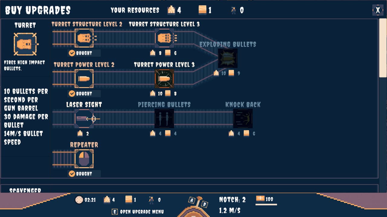 Улучшения приобретаются через разветвленное дерево технологий, где в качестве ресурсов используются не только сталь и золото, но и спасенные выжившие. Для пополнения запасов в Choo Choo Survivor 2 предусмотрена возможность вызова транспортного вертолета, доставляющего необходимые материалы прямо в пути. Кроме обычных зомби, на пути встречаются и более опасные противники, включая могущественного Лорда Вампиров, способного призывать стаи гигантских летучих мышей.