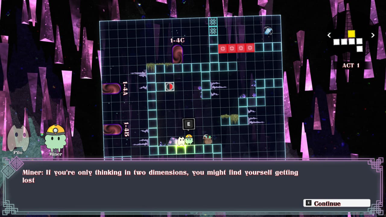 Центральной механикой проекта является способность переключаться между 2D и 3D-перспективами. В двухмерном режиме Пило ограничен одной плоскостью, но прикосновение к ее краю позволяет вращать весь мир, изменяя направление силы тяжести. Переход в трехмерный вид открывает, что эта плоскость — лишь одна из внутренних граней куба, а края служат проходами на другие стороны. Решение головоломок в Vextorial требует тщательного планирования маршрута с учетом этих пространственных трансформаций. По мере продвижения вводятся новые элементы, такие как переключаемые блоки и ворота, управляемые кнопками, что дополнительно усложняет навигацию.