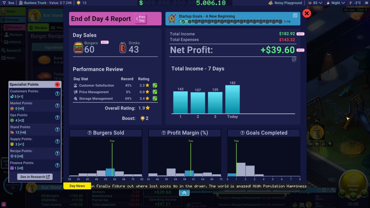 Business Heroes: Street Grub v Build 21605373 Новая версия Полная версия Последняя в альт. раздачах Дата выхода 2 дек. 2025 Разработчик Visionaries Жанр Симуляторы, Инди, Стратегии Положительные на основе 38 обзоров в Steam 84% Обновлено 22 июля 2025, 10:38 Список изменений Business Heroes: Street Grub передает игрокам контроль над предприятием уличной еды, ставя задачу по управлению бизнесом с нуля. Эта игра работает на основе пошаговой механики с элементами эстетики 90-х и комедийной сюжетной линией. Первоначальная тележка с едой служит отправной точкой для предприятия, способного вырасти в целый парк фудтраков. Геймеры занимаются продажами для причудливых типов клиентов, используя аналитику и стратегию для расширения своего дела. Секреты успеха вашего фудтрак-бизнеса: Стратегическое планирование каждого рабочего дня. Изучение вкусов и предпочтений клиентов. Создание идеальных рецептов для разных районов. Постепенное расширение бизнеса от одной тележки. Игровой процесс в Business Heroes: Street Grub строится вокруг особого пошагового цикла, где каждый день функционирует как новый ход. Ночь отводится под планирование и принятие оперативных решений. В это время происходит разработка меню, установка цен и выбор стратегической локации для дневной торговли. Затем, с наступлением дня, вы реализуете план и наблюдаете за потоком посетителей, что демонстрирует прямые результаты принятых решений. В основе кулинарного аспекта лежит система кастомизации бургеров. Вы осваиваете эту систему, подбирая правильные ингредиенты для создания рецептов, удовлетворяющих определенные сегменты покупателей. Каждая демографическая группа имеет свои предпочтения во вкусовых сочетаниях, открываемые путем экспериментов. Создание идеального рецепта бургера для каждой группы является секретом повышения популярности фудтрака и ключом к росту вашей империи стритфуда. Скачать торрент Скриншоты Показать больше Видео из игры Скачать Business Heroes: Street Grub Тип релиза RePack от FitGirl Версия v 1.0 Размер 607 МБ Интерфейс Английский Озвучка Английская Особенности репака: Примечание Более актуальная версия: v Build 21605373находится в блоке - Альтернативные раздачи. Скачать .torrent торрент файл Скачать БЕЗ торрента прямая ссылка через uTorria Альтернативные раздачи Прямые ссылки Облачные хранилища v Build 21605373 1.4 ГБ Показать Системные требования ОС: Windows 7, 10, 11 (64-bit) Процессор: Intel Core i3 / AMD fx-6300 Оперативная память: 4 ГБ Видеокарта: Intel HD Graphics 4000, Nvidia GTX 640 / AMD Radeon HD 7750 Место на диске: 2.8 ГБ Пошаговые стратегии, Капитализм, Экономика, Менеджмент, Менеджмент инвентаря, Стилизация, Логика, Песочница, Игры в 2D, Ретро, Решения с последствиями, Изометрия, Милая, Управление ресурсами, Реиграбельность