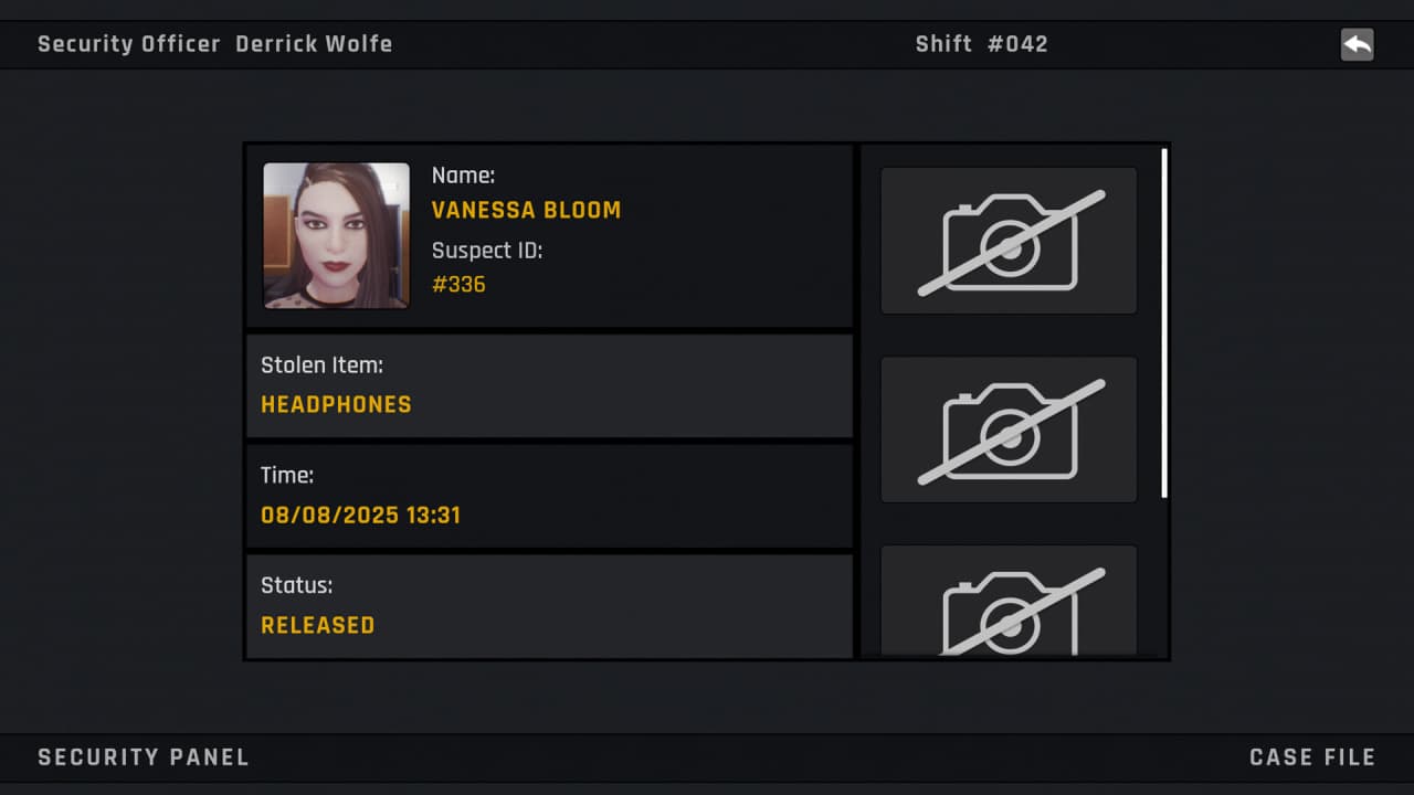 Shoplifter No Escape — ставит перед ночным охранником Дерриком Вульфом непростую дилемму, ведь именно от его решений зависит участь семи уникальных правонарушителей, пойманных в тихом супермаркете. Судьба каждого задержанного, от провокатора Ванессы Блум до студентов и парочек, определяется в ходе напряженных допросов. Успешное расследование каждого инцидента требует от протагониста не только внимательности, но и умения решать различные головоломки. Итогом каждого дела становится одна из двух десятков откровенных сцен, содержание которых напрямую отражает сделанный выбор и проявленную смекалку в решении поставленных задач.