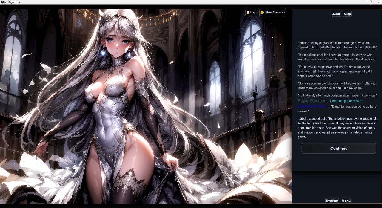 Ascension I: From Rags to Riches v 1.0.3 Новая версия Полная версия Последняя Дата выхода 2025 Разработчик The Pink Penguin Жанр Обновлено 21 июля 2025, 17:34 Список изменений Ascension I: From Rags to Riches представляет систему, в которой главный герой, Эдгар, развивает определенные личные способности. Основной игровой процесс включает двойной путь развития, позволяющий улучшать как воровские навыки для хитрости, так и мастерство соблазнения для оказания влияния. Эти отточенные таланты затем применяются для преодоления трудностей и продвижения по сюжетной линии. В результате путь геймера по миру формируется за счет постоянного совершенствования этих способностей, открывающих новые взаимодействия и возможности. Далее по ходу игры, Ascension I: From Rags to Riches вводит компонент управления бизнесом. Предстоит основать несколько предприятий в городе Тего, удовлетворяющих похотливые запросы горожан. Эти операции необходимо поддерживать и развивать, что требует улучшений и тщательного баланса между доходами и расходами. Помимо финансового надзора, нужно управлять репутацией своих предприятий и нести ответственность за найм женского персонала для заведений. Сюжет ведет к конечной цели, связанной с городским троном и леди Изабель. Путь к этому финалу полностью определяется решениями, принятыми игроком в ходе истории. Каждый значимый выбор изменяет направление повествования, создавая разветвленный опыт. В результате у проекта нет единого финала; вместо этого он предлагает несколько различных концовок, каждая из них — прямое следствие предпринятых действий. Скачать торрент Скриншоты Скачать БЕЗ торрента прямая ссылка через uTorria Альтернативные раздачи Прямые ссылки Облачные хранилища v 1.0.3 2.81 ГБ Показать Системные требования ОС: 7, 8, 10, 11 Процессор: Dual Core 2.4 GHz Оперативная память: 2 ГБ Видеокарта: 2 ГБ Нагота