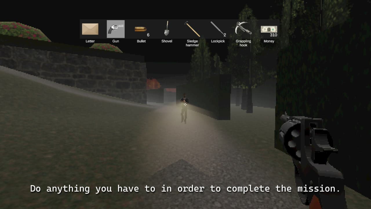 Перед тем как отправиться на финальную миссию в поместье некоего Мисташура, необходимо тщательно подготовиться, поскольку возврата назад уже не будет. Арсенал и инвентарь, собранные во время исследования мира, определяют, каким из множества способов завершится это психологическое приключение. Визуальный стиль, вдохновленный ретро-графикой, и мрачная, почти лихорадочная атмосфера создают напряженное ощущение постоянной загадки, скрытой за фасадом обыденности.