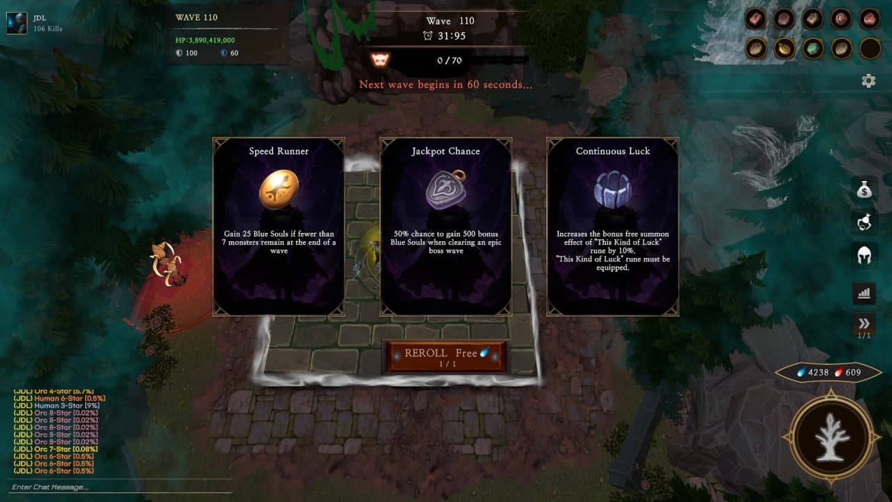 После победы над эпическими боссами открывается возможность выбора одной из трех случайных рун, предоставляющих шанс скорректировать стратегию или испытать удачу снова. Призыв юнитов разделен на 8 уровней редкости, от обычных до ультра-редких. Таким образом, ни одно прохождение не будет похоже на предыдущее, заставляя постоянно адаптироваться к меняющимся условиям и превращать неопределенность в продуманный план действий для защиты мира от надвигающейся тьмы.