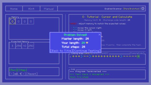 Brainfuck Challenge v Build 19277594 Новая версия Полная версия Последняя Дата выхода 13 июл. 2025 Разработчик Lyric Law Жанр Инди Положительные на основе 37 обзоров в Steam 97% Обновлено 24 июля 2025, 16:27 Список изменений Brainfuck Challenge представляет собой серию пазлов, основанных на эзотерическом языке программирования. В его основе лежит всего 8 команд, образующих минималистичную, но полную по Тьюрингу систему. Игрокам предстоит пройти интерактивное обучение для изучения основ с нуля. Основной геймплей состоит в применении полученных знаний для решения набора испытаний, проверяющих логическое мышление. Проект также предлагает возможность выполнять написанный код в отдельном терминале. Ключевой процесс сфокусирован на постепенном изучении и применении механик, с переходом от базовых принципов к более комплексным заданиям. Brainfuck Challenge функционирует как интерактивная дань уважения эзотерическим языкам, известным как эзоланги. Местные головоломки требуют от игрока управлять данными в массиве памяти, используя лишь ограниченный набор директив. Данный подход известен своей сложностью для чтения человеком, что является центральным элементом всего опыта. Каждое испытание ставит целью достижение конкретного результата путем написания работающего кода. Здесь предстоит взять на себя роль программиста, ответственного за написание функционального кода для выполнения требований уровня. Встроенное обучение знакомит с каждой из восьми инструкций, охватывая работу с указателями, изменение данных и функции ввода/вывода. После инструктажа эта игра предлагает серию пазлов, требующих комбинации изученных директив для получения комплексных результатов. Весь процесс является сосредоточенным исследованием ограниченной, но функциональной программной среды через последовательность логических заданий. Скачать торрент Скриншоты Видео из игры Скачать Brainfuck Challenge Тип релиза Пиратка (Таблетка: Не требуется) Версия v Build 19277594 (Полная) Последняя Размер 58.03 МБ Интерфейс Английский Озвучка Отсутствует Установка: Скачать .torrent торрент файл Скачать БЕЗ торрента прямая ссылка через uTorria Альтернативные раздачи Прямые ссылки Облачные хранилища v Build 19277594 74 МБ Показать Системные требования ОС: Windows 10 (64-bit) Процессор: 2.0 ГГц dual Core Оперативная память: 512 МБ Видеокарта: OpenGL 2.0 Место на диске: 200 МБ Программирование, Казуальная, Образование, Головоломка