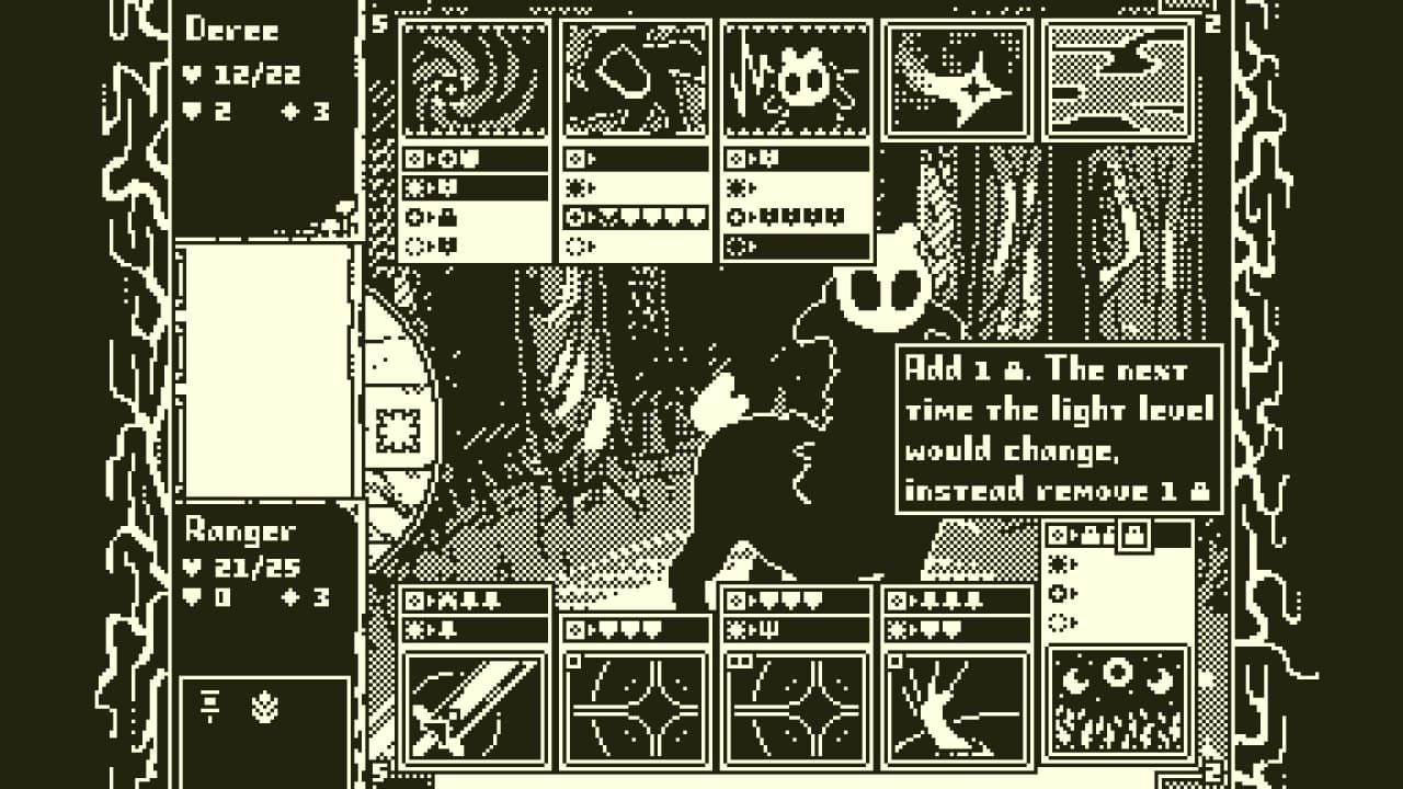 Продвигаясь вглубь странного, лишенного цвета леса, предстоит сразиться с более чем 30 видами врагов и заполнить внутриигровой бестиарий. Для открытия доступно свыше 400 различных карт и дюжина артефактов, способных кардинально изменить ход сражения. После победы над финальным боссом открывается доступ к 20 уровням сложности, вносящим дополнительные модификаторы в прохождение и повышающим реиграбельность этого стратегического приключения.