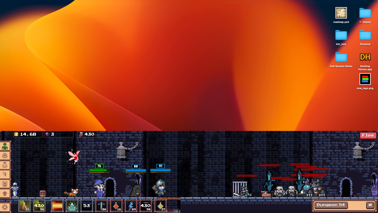Desktop Heroes — предлагает взять под опеку отряд из четырех героев, ведомых жаждой приключений в необычном пиксельном мире. Команда состоит из классических архетипов: могущественного Волшебника, полагающегося на заклинания, отважного Воина, вооруженного мечом, меткого Лучника, поражающего цели на расстоянии, и хитрого Разбойника, действующего скрытно. Их путешествие разворачивается в реальном времени, пока пользователь занят своими повседневными делами за компьютером. Персонажи самостоятельно движутся вперед, сокрушая монстров и собирая ценные трофеи.