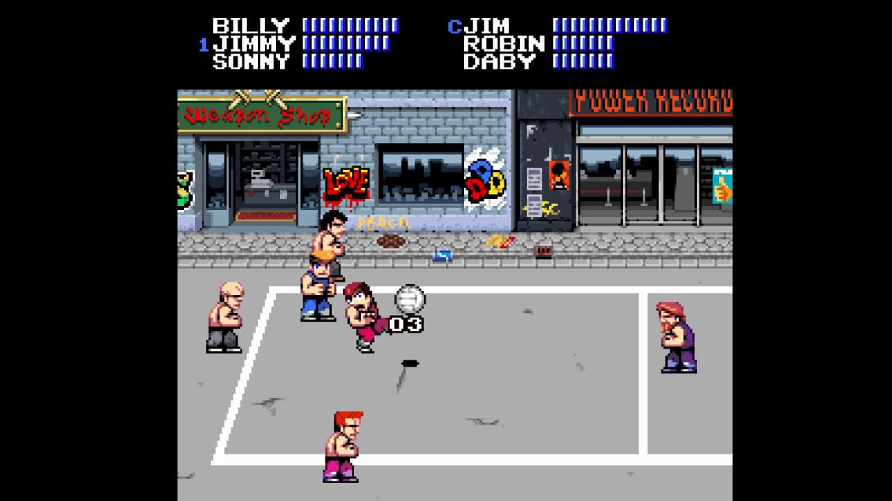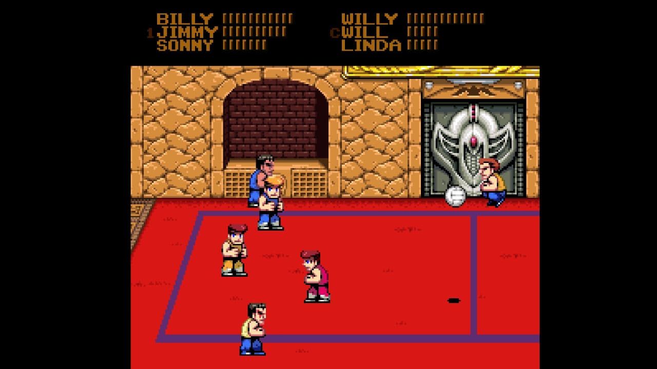 Double Dragon Dodgeball — арена для яростных спортивных противостояний, разворачивающихся в знаковых для вселенной локациях. Сражения проходят на городских улицах и посреди древних руин, где до четырех бойцов сходятся в поединках до последнего выжившего. Победа достигается не только ловкостью, но и применением мощных спецприемов, превращающих классическую забаву в настоящую битву. Механики сочетают спортивную тактику с элементами боевика, заставляя участников постоянно маневрировать и искать уязвимости оппонентов для нанесения решающего броска.