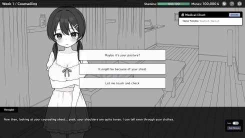DokiDoki! Hentai Massage — симулятор управления массажным салоном, где основной задачей становится полное удовлетворение единственной клиентки. Геймплей построен на деликатном взаимодействии с телом Наны Танаки, требующем от геймера контроля за её физическим и эмоциональным состоянием. Необходимо внимательно отслеживать показатели усталости, удовольствия и бдительности, чтобы довести девушку до пика расслабления и получить высокие оценки. Все эти манипуляции происходят в условиях жёсткого временного ограничения, ведь на погашение крупного долга отведено всего 3 месяца, или 12 недель интенсивной практики.