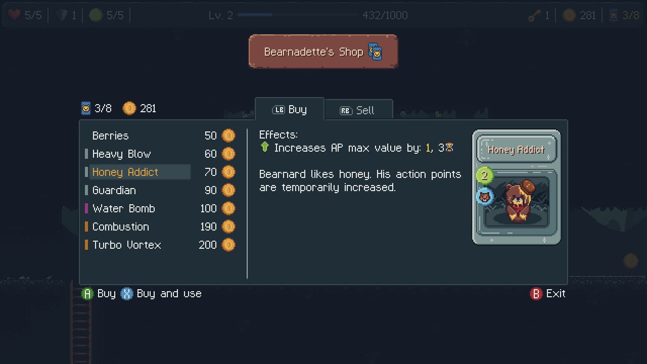 Bearnard v 1.0.43 Новая версия Полная версия Последняя Дата выхода 12 авг. 2024 Разработчик Michał Wikliński Жанр Приключения, Инди Очень положительные на основе 151 обзоров в Steam 97% Обновлено 16 августа 2025, 13:44 Список изменений Bearnard предлагает взять под управление медведя, отправившегося за особым луком для защиты родного леса от внешних угроз. Этот одиночный игровой проект представляет собой путешествие по разнообразным ландшафтам, в ходе которого предстоят сражения с противниками и решение головоломок, основанных на физике. Основой столкновений служит пошаговая система с использованием колоды, требующая стратегического планирования каждого хода для одоления неприятелей. Ключевые элементы вашего незабываемого путешествия: Тактические пошаговые сражения с использованием карт. Исследование мира и решение головоломок, основанных на физике. Динамичный платформер в разнообразных биомах. Сбор уникальной колоды и создание мощных комбинаций. Освоение карточного геймплея в Bearnard является ключом к разработке успешной стратегии. Игроку доступна обширная коллекция карточек со специальными способностями, предлагающих функции от лечения и защиты до контроля группы оппонентов. Новые обычные, редкие, эпические и легендарные экземпляры добываются при прохождении локаций, победах в стычках и открытии особых сундуков. Также можно комбинировать стихийные элементы для создания мощных синергетических связок, открывающих доступ к сложным маневрам во время поединков. Эта игра предлагает динамичный платформерный экшен на разнообразных территориях и вручную созданных уровнях. Путь пролегает через густые леса, глубокие шахты, заснеженные горы, внушительные замки и темные подземелья. Каждый биом таит в себе уникальные испытания и затаившихся недругов, встречи с которыми происходят в реальном времени. Преодоление опасных препятствий и столкновения с неприятелями требуют точных движений, являясь ключевым элементом дизайна здешнего мира. Скачать торрент Скриншоты Показать больше Видео из игры Скачать БЕЗ торрента прямая ссылка через uTorria Альтернативные раздачи Прямые ссылки Облачные хранилища v 1.0.43 52 МБ Показать Системные требования ОС: Windows 10 (64-bit) Процессор: 2+ cores, 2+ ГГц Оперативная память: 2 ГБ Видеокарта: Intel HD Graphics 530 Место на диске: 200 МБ Пошаговые сражения, Милая, Смешная, Линейная, Карточная игра, 2D-Платформер, Пиксельная графика, Пошаговая тактика, Тактика, Сложная, Головоломка, Платформеры, Игры в 2D, Цветастая, Глубокий сюжет, Физика, Игры с геймпадом