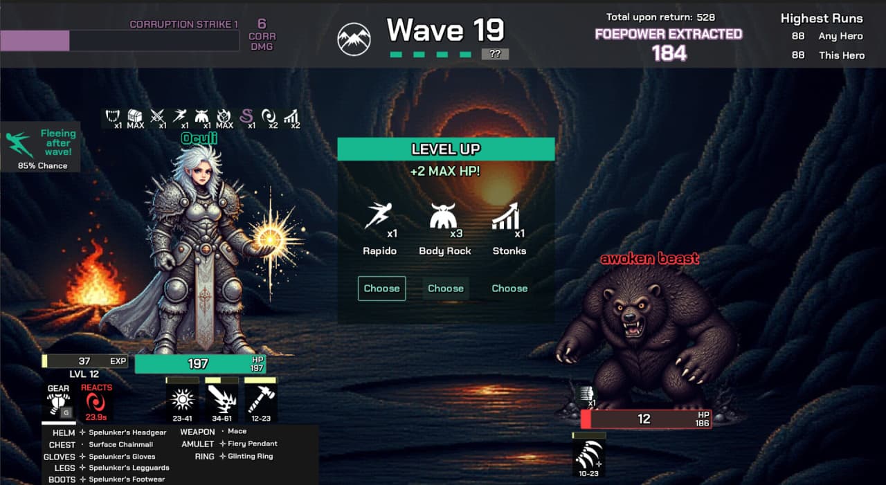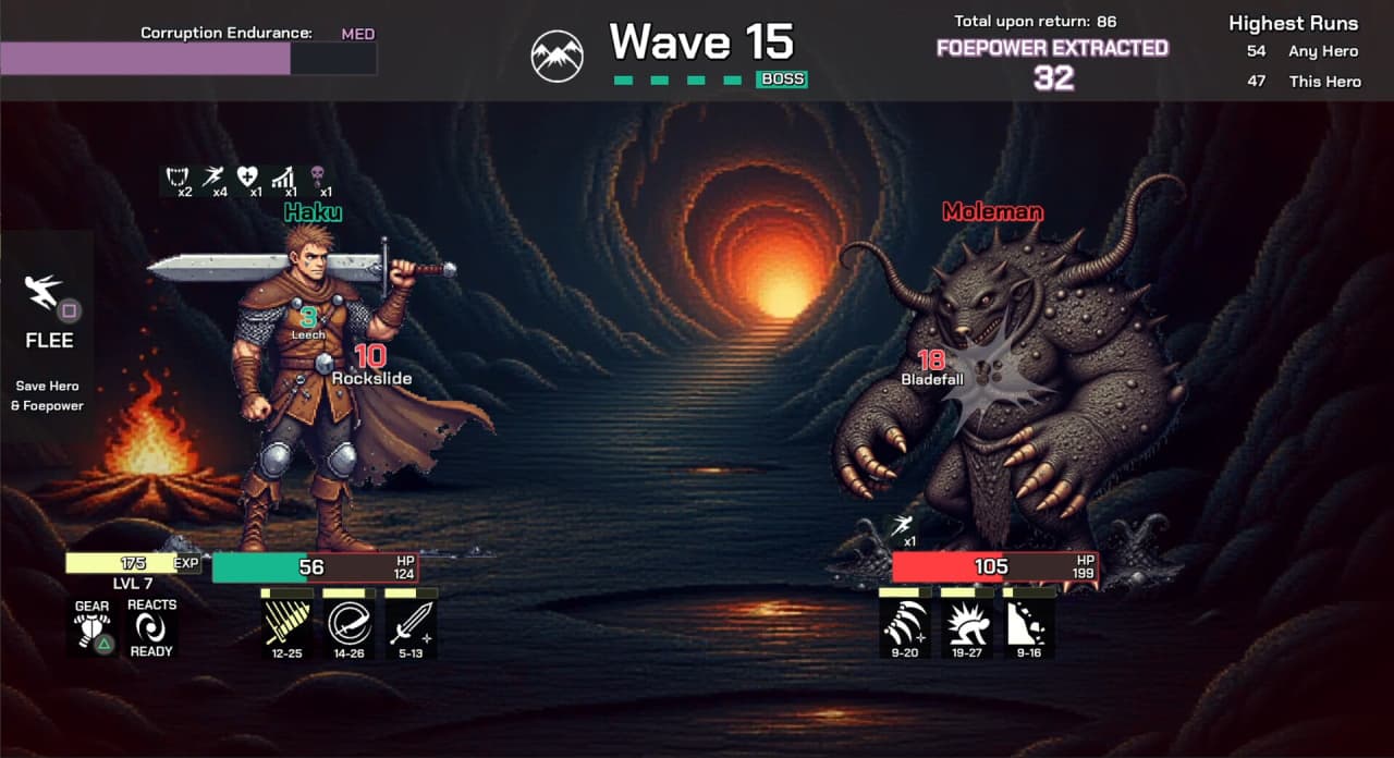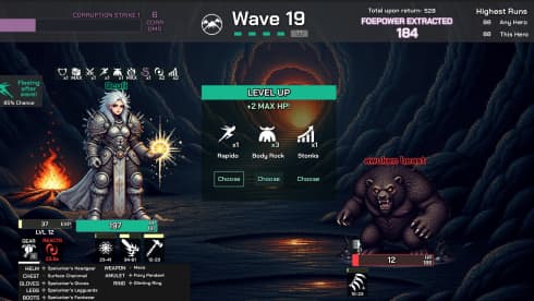 Foepower v 1.0.1.3 Новая версия Полная версия Последняя Дата выхода 13 мар. 2025 Разработчик Foepower Game Studio Жанр RPG, Инди Обновлено 15 августа 2025, 17:11 Список изменений Foepower запускает цикл, в котором герои одного из трех классов отправляются в горы на битву с порочными чудовищами. Сражения в этом роглайте проходят автоматически, а некоторые встречи носят откровенно пикантный характер. Игрок собирает ресурс с растущего числа поверженных противников. Этот ключевой материал необходим для дальнейшего продвижения в игре. Каждый поход предлагает случайную последовательность событий и вызовов, создавая уникальный опыт при каждой новой попытке. Путь к славе через скверну и соблазны в Foepower: Сражения с ордами порочных созданий. Сбор ценного ресурса для перманентного усиления следующих смельчаков. Уникальные забеги благодаря случайным событиям и динамичной прокачке. Короткие, но насыщенные сессии с соревнованием на скорость. После экспедиции добытый ресурс становится валютой для перманентного усиления следующего героя, выбранного для каждого захода, что крайне важно для продвижения в таблице лидеров. Внутри одного забега геймерам предлагаются динамические выборы при повышении уровня, открывая простор для разнообразных билдов и тактик. К тому же, можно находить снаряжение, дающее бонусы к характеристикам и новые способности. Проект также предлагает особые встречи с различными исходами, дополнительно меняя геймплей при каждом прохождении. Одна сессия подразумевает прокачку нанятого персонажа с 1 до 30 уровня в рамках дизайна, сфокусированного на коротких и самодостаточных игровых циклах. Каждый этап исследования и автоматических боев занимает от 30 до 90 секунд. Кроме того, тайтл отслеживает продолжительность активного боя, создавая соревновательный элемент скоростного забега против собственных лучших результатов. Скачать торрент Скриншоты Показать больше Видео из игры Скачать БЕЗ торрента прямая ссылка через uTorria Альтернативные раздачи Прямые ссылки Облачные хранилища v 1.0.1.3 127 МБ Показать Системные требования ОС: Windows 10, 11 Процессор: 2.0+ ГГц Оперативная память: 4 ГБ Видеокарта: 2 ГБ OpenGL 3.3+ Место на диске: 500 МБ Упрощённый рогалик, Олдскул, Решения с последствиями, Одна жизнь, Игрок против ИИ, Разделение на классы, Рогалик, Игры в 2D, Средневековье, Игры с геймпадом
