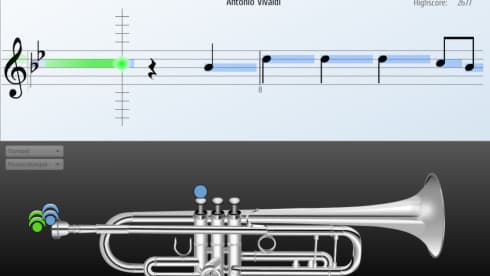 Процесс обучения построен на визуализации и геймификации. На экране отображается анимация движущейся партитуры, где длительность нот показана синими блоками, а высота — их положением на нотном стане. Для дополнительного удобства в Songs2See реализован режим, демонстрирующий правильную аппликатуру для выбранного инструмента в реальном времени. Зеленые метки показывают текущую позицию пальцев, а синие — следующую, что помогает заранее подготовиться к смене ноты. Предусмотрен также специальный режим обучения, позволяющий осваивать сложные музыкальные отрывки пошагово, повторяя их в замедленном темпе.