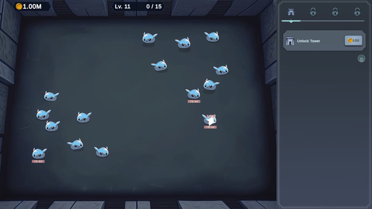 Основа противостояния заключается в размещении на поле до 3 башен из 5 доступных типов, которые автоматически атакуют волны монстров. Противники не наносят урон, но с каждым этапом их запас прочности серьезно возрастает. Заработанное золото тратится на повышение уровня башен до 50, а затем на улучшение их ранга, что сбрасывает прокачку до 1. Именно такой цикл составляет ядро процесса в Samawa Idle. Каждые пять раундов на арене появляется мощный босс, требующий от обороны максимальной эффективности и правильного подбора перков, таких как шанс дополнительного выстрела.