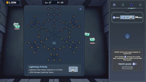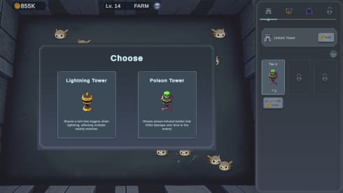 Важную роль в сражениях играет элемент случайности, пронизывающий все механики. Практически все аспекты, от выпадающих бонусов до самих противников, разделены на несколько категорий редкости: от обычной до легендарной. Стратегия выстраивается вокруг комбинаций сооружений, например, сочетания Энергетической башни с ее взрывами по площади и Ядовитой, наносящей периодический урон. Со временем открывается доступ к автоматизатору — механизму, самостоятельно совершающему улучшения, что позволяет полностью перевести процесс в фоновый режим и сосредоточиться на глобальной стратегии развития.