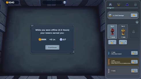 Samawa Idle — проект, где для существенного усиления боевой мощи необходимо периодически прибегать к полному обнулению прогресса. Такой сброс, именуемый Жертвоприношением, позволяет получить специальные жетоны и рунные камни для вложения в разветвленные деревья навыков. Каждое оборонительное сооружение обладает собственной веткой развития. Дополнительную вариативность вносит мастерская, после каждого повышения уровня предлагающая на выбор один из трех случайных бонусов к характеристикам. Геймплей также углубляют уникальные артефакты, дающие постоянные преимущества в бою.