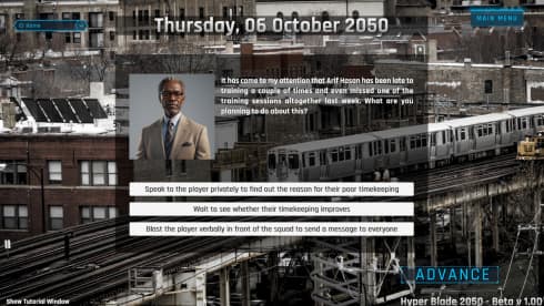 Центральное место в повествовании отведено не только тактическим решениям, но и человеческим взаимоотношениям. Успех зависит от умения выстраивать связи внутри коллектива, переживая вместе с атлетами весь спектр эмоций — от триумфальных побед до сокрушительных поражений. Менеджеру предстоит принимать сложные решения, влияющие не только на исход матчей, но и на судьбы подопечных в этом суровом мире. Именно этот аспект делает HyperBlade 2050 - Dystopian Sports Manager глубоким симулятором, где важен каждый член команды.