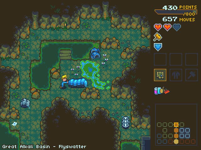 Визуальный стиль проекта выполнен в классической пиксельной графике, а атмосферу дополняет энергичный саундтрек. Каждый уровень представляет собой обширную локацию, наполненную комнатами с головоломками, необязательными целями и множеством секретов. Геймплей Puzzle Depot расширяет границы жанра сокобан, предлагая сражаться с противниками и собирать добычу. Для преодоления многочисленных испытаний предусмотрено несколько управляемых персонажей с уникальными способностями, включая специально приглашенного Тинкер Найта. Встроенный интерактивный учебник помогает освоить основы, а функция отмены последнего хода позволяет исправлять допущенные ошибки без перезапуска всей комнаты.