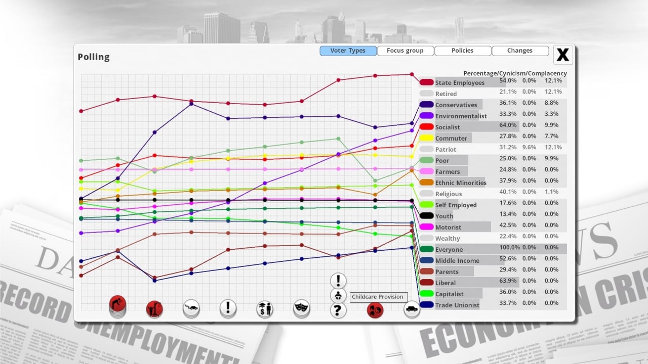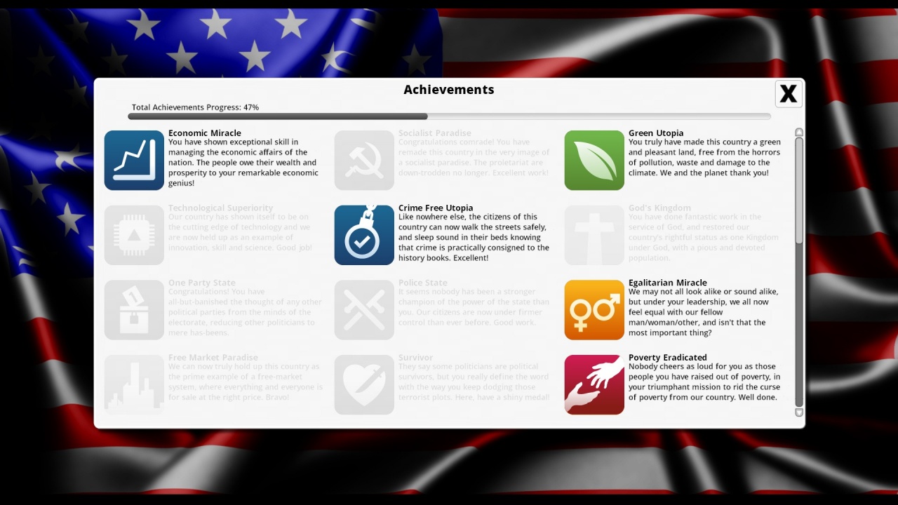 Democracy 3 RUS v 2.7.0.8 [GOG] + все DLC - Collector's Edition Новая версия Полная версия Последняя в альт. раздачах Дата выхода 14 окт. 2013 Разработчик Positech Games Жанр Симуляторы, Стратегии, Инди В основном положительные на основе 6241 обзоров в Steam 74% Обновлено 26 января 2025, 00:47 Список изменений Democracy 3 – игра, сфокусированная на демократии, дипломатических миссиях и отношении между странами и представителями правительства. Пользователь побывает в роли председателя или президента на выбор. На старте прохождения происходит ввод в игровой процесс, где объясняются правила и возможности. Игроку, получив высокую должность, потребуется изменить статистику в 7 аспектах, как общественные услуги, экономика, налоги, внешняя политика, правопорядок, транспорт и социальное обеспечение. Перед началом геймер выберет главу одной из нескольких стран. Государства имеют собственные стартовые условия и возможности повлиять на 7 областей. Изменение политики приводит к счастью или негативным последствиям со стороны другие групп избирателей. Действия юзера влияют на экономику страны, благополучие жителей, фактор преступности, качество воздуха и другие элементы жизни. Геймплей моделирует мотивацию, привязанности и желания каждого жителя в государстве. Страна представлена в упрощенном виде с понятными иконками, помогающими исследовать взаимосвязь между решениями и настроем избирателей. Игрок способен повлиять на торговлю, а та на размер ВВП, что последует изменениям в уровне безработицы, бедности и преступности. Каждое решение несет последовательную цепочку событий, затрагивающих несколько показателей, которые могут улучшить или ухудшиться. Граждане наблюдают за выполнением обещаний и имеют доверенность к выбранному кандидату, а она может упасть или подняться из-за выборов деятеля. Скачать торрент Скриншоты Показать больше Видео из игры Скачать Democracy 3 Тип релиза RePack от xatab Версия v 1.11 - Collector's Edition Размер 60.70 МБ Интерфейс Русский Озвучка Отсутствует Особенности репака: Примечание Более актуальная версия: v 2.7.0.8 [GOG] + все DLC - Collector's Editionнаходится в блоке - Альтернативные раздачи. Скачать .torrent торрент файл Скачать БЕЗ торрента прямая ссылка через uTorria Альтернативные раздачи Торренты Лицензия (Таблетка: Присутствует) v 2.7.0.8 [GOG] + все DLC - Collector's Edition 182 МБ Скачать Лицензия GOG (Таблетка: Не требуется) v 1.34 Final Update (23486) 223 МБ Скачать Прямые ссылки GOG версия (Без DRM) v 1.34 Final Update 189 МБ Показать Системные требования ОС: 7, 8, 10 Процессор: Intel Core i3 2.00 GHz Оперативная память: 2 ГБ Видеокарта: 1 ГБ видеопамяти, поддерживающая DirectX: 9.0с Место на диске: 500 МБ Политический симулятор, Пошаговая, Экономика, Менеджмент, Песочница, Сложная, Игры в 2D, Пошаговые стратегии, Казуальная, Образование, Капитализм, Смешная