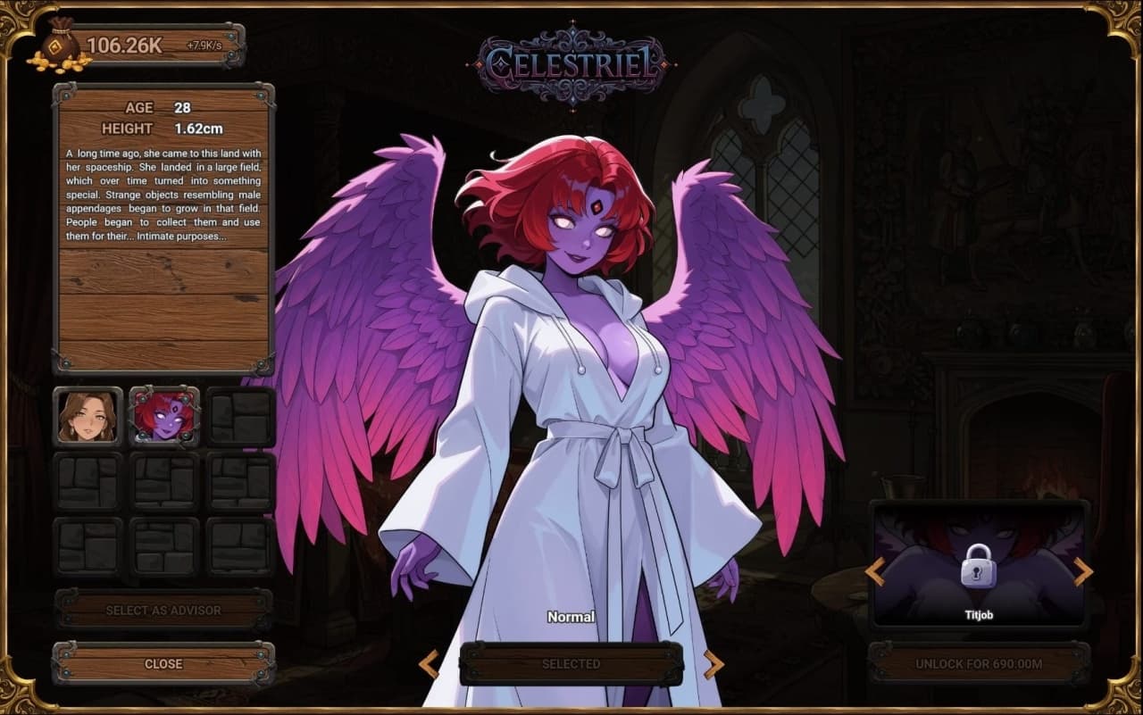 King's Favor RUS v 6 Basic Новая версия Полная версия Последняя Дата выхода 2025 Разработчик Ms. Peach Жанр Обновлено 10 сентября 2025, 17:11 Список изменений King's Favor предлагает взять под контроль владения, где решения продиктованы удовольствием и амбициями. Геймеру предстоит стать правителем, расширяющим личное королевство через непосредственный надзор за политикой и экономикой. Для этого необходимо распространять свое влияние по землям. Главная задача — создать империю, удовлетворяющую как личные желания, так и стратегические цели, совмещая искусство управления государством с исполнением собственных прихотей. Основная механика King's Favor заключается в найме советниц, помогающих управлять государством и развивать провинции. Эти персонажи консультируют по делам державы, содействуя расширению границ королевства. По мере вложения ресурсов в земли и их улучшения роль советниц меняется. Такое развитие открывает доступ к личным встречам, становящимся более откровенными с ростом могущества и авторитета правителя. Игровой процесс напрямую связывает расширение территорий с развитием личных отношений. Инвестиции в провинции открывают новые сюжетные сцены с придворными дамами. Эти встречи позволяют исследовать чувственные фантазии и укреплять связи с нанятыми героинями. Такая модель развития увязывает реализацию политических амбиций с исполнением желаний, делая эти два аспекта игры взаимозависимыми элементами общего процесса построения державы. Скачать торрент Скриншоты Скачать БЕЗ торрента прямая ссылка через uTorria Альтернативные раздачи Прямые ссылки Облачные хранилища v 6 Basic 168.9 МБ Показать Системные требования ОС: 7, 8, 10, 11 Процессор: Dual Core 2.4 GHz Оперативная память: 2 ГБ Видеокарта: 2 ГБ Нагота