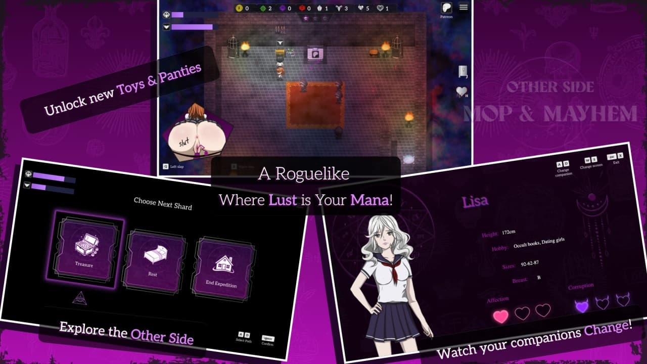 Other Side: Mop and Mayhem v 0.4.1 Новая версия Полная версия Последняя Дата выхода 2025 Разработчик lustoriagames Жанр Обновлено 9 сентября 2025, 11:55 Список изменений Протагонист Other Side: Mop and Mayhem — Людомант, заклинатель, превращающий похоть в магическую силу. Главная задача — спасти друга из опасного измерения под названием Иная Сторона. Это приключение ставит геймера перед выбором: выполнить миссию или поддаться искушениям мира. Развитие сюжета зависит от способности персонажа противостоять соблазнам и развращающему влиянию окружения. Игровой процесс в Other Side: Mop and Mayhem строится на механиках рогалика с акцентом на создание экспериментальных сборок. Геймеры собирают и используют необычные предметы, такие как зачарованное бельё, игрушки и мистические знаки, усиливающие их способности. Эти артефакты служат основой для билда, даруя бонусы и тактические преимущества в бою. Каждый новый забег подталкивает к экспериментам с комбинациями вещей для поиска мощных сочетаний, помогающих преодолевать испытания. В ходе странствий протагонист встречает спутников, готовых присоединиться к его миссии. Система взаимоотношений позволяет выстраивать связи с этими персонажами, а сюжетные развилки зависят от решений самого игрока. Можно укреплять узы и завоёвывать доверие союзников через позитивное взаимодействие. Либо же пойти по пути совращения, коренным образом меняя их характер и преданность. Подобные выборы напрямую определяют развитие истории и ту помощь, на которую сможет рассчитывать главный герой. Скачать торрент Скриншоты Скачать БЕЗ торрента прямая ссылка через uTorria Альтернативные раздачи Прямые ссылки Облачные хранилища v 0.4.1 432 МБ Показать Системные требования ОС: 7, 8, 10, 11 Процессор: Dual Core 2.4 GHz Оперативная память: 2 ГБ Видеокарта: 2 ГБ Нагота