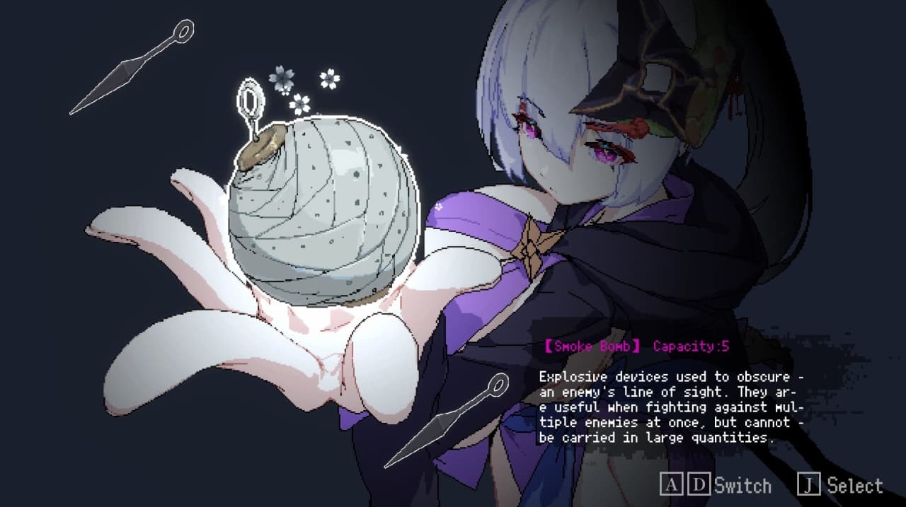 Red Lotus Ninja Scroll — это двухмерный экшен с элементами стелса, события которого разворачиваются в Японии периода Эдо. Основой геймплея является система визуальных подсказок, определяющая тактику прохождения. Над головой противника, не подозревающего об опасности, отображается красная точка, что позволяет совершить бесшумное устранение. Смена индикатора на белый цвет сигнализирует об обнаружении героини. В этот момент возможность для скрытной атаки исчезает, вынуждая переходить к открытому столкновению или тактическому отступлению. Плавные переходы между этими двумя состояниями позволяют гибко адаптироваться к любой ситуации на поле боя.