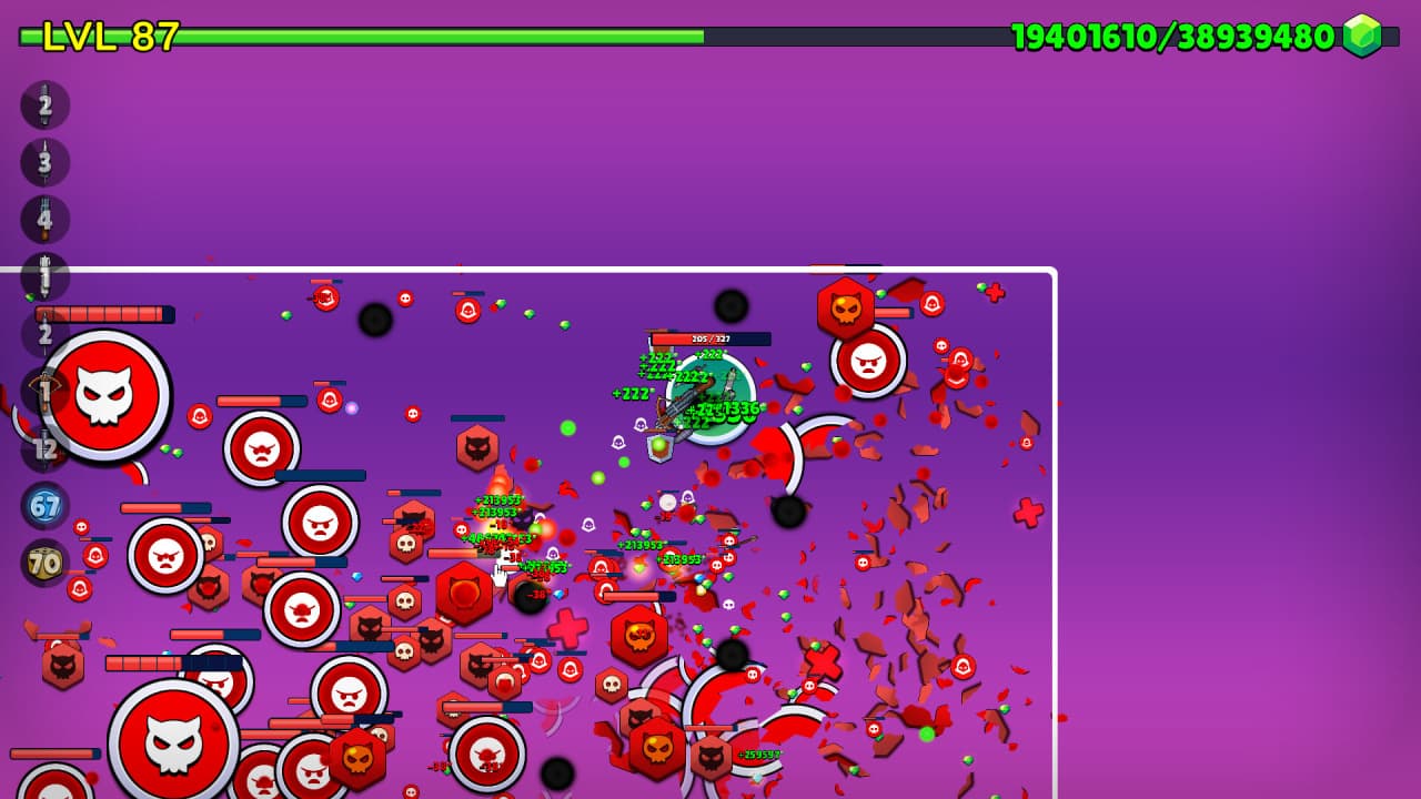 Проект представляет собой синтез кликера с механиками арена-шутера и обратного bullet hell. В основе Just Click The Button лежит постоянная эволюция, запускаемая действиями пользователя. Система развития предлагает несколько направлений для усиления.