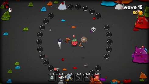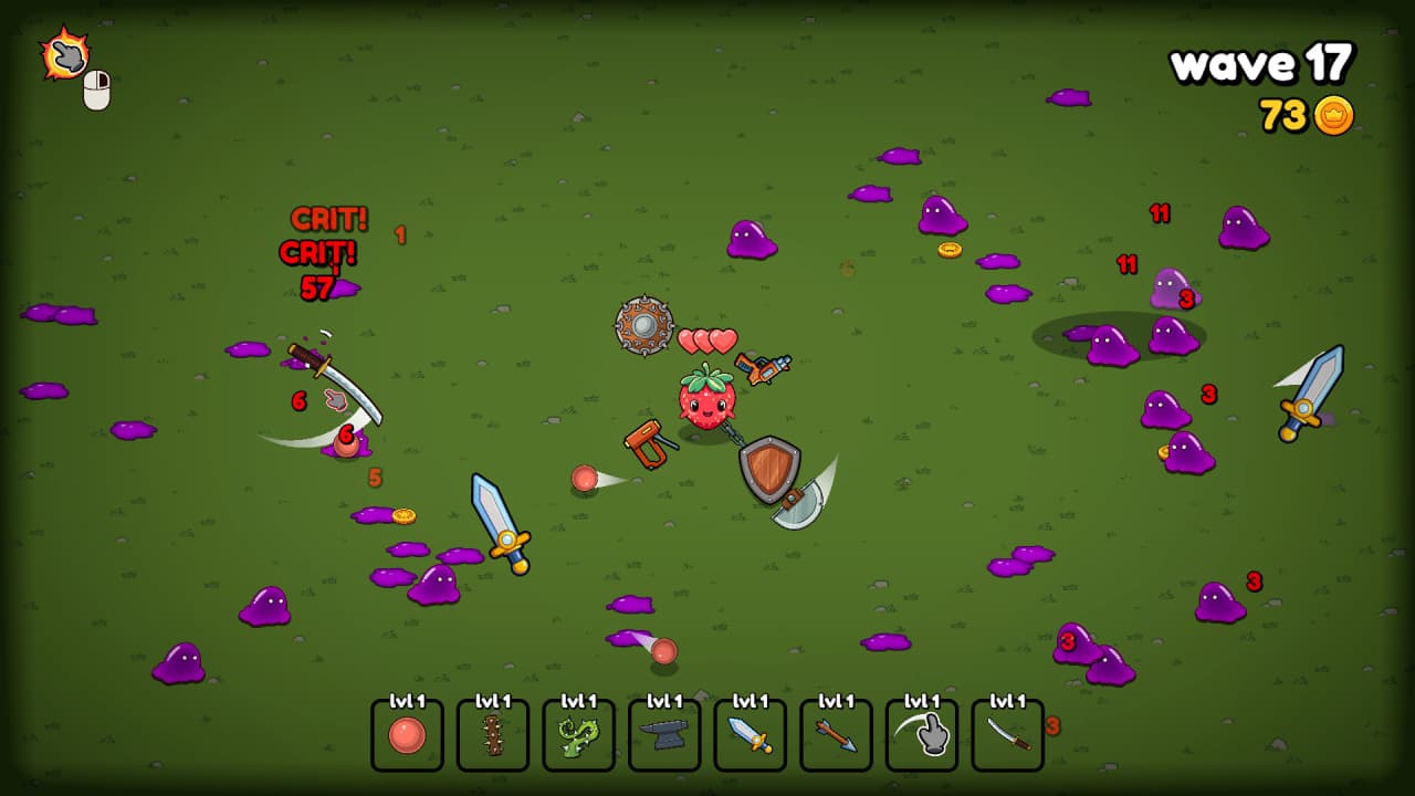 Slime Squisher — это аркадный проект, сочетающий в себе механики рогалика и кликера, где основной задачей является защита беззащитной ягоды. Основой для успешного прохождения становится создание уникальных сборок из множества улучшений, которые открываются после отражения каждой вражеской волны. В распоряжение геймера поступает обширный арсенал, позволяющий кастомизировать тактику под свой стиль ведения боя. Прогрессия реализована через систему перманентных улучшений, приобретаемых между забегами, что добавляет в процесс стратегическую глубину. Помимо усиления базовых атак, можно размещать на поле боя до 7 видов специального оружия.