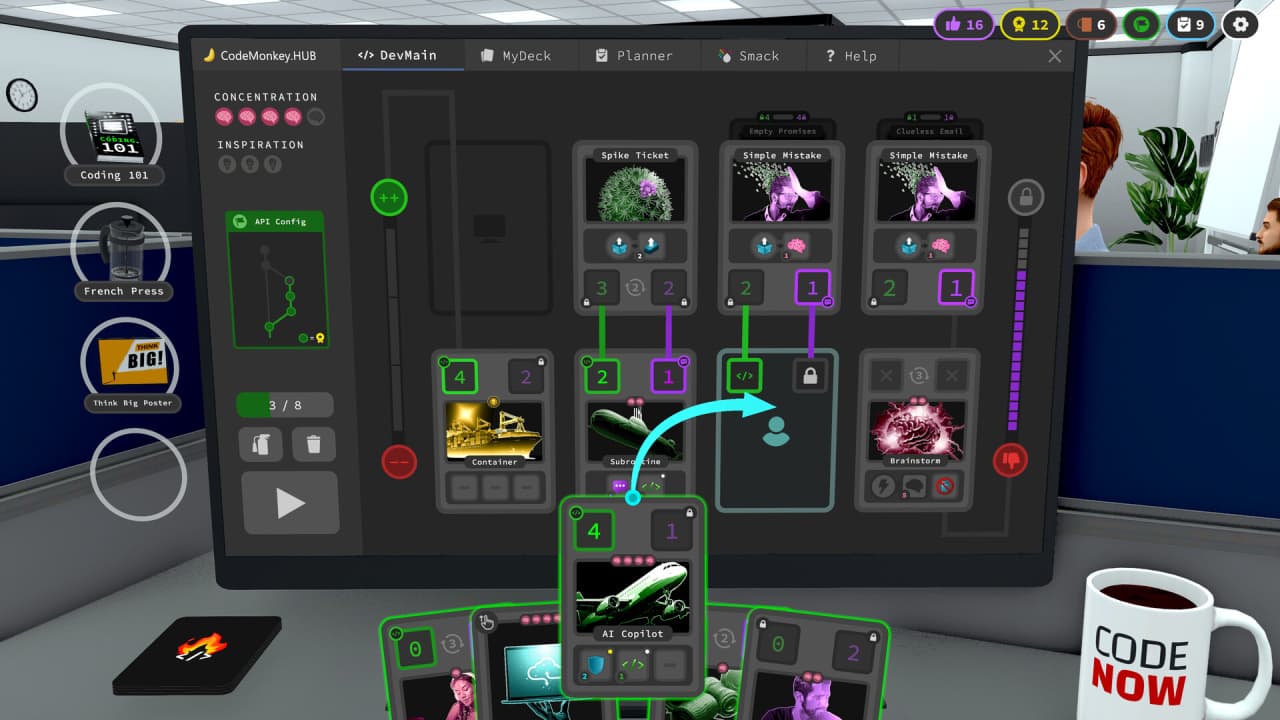 dev_hell — это колодостроительный рогалик, действие которого разворачивается в сатирически изображенной среде разработки программного обеспечения. Проект полностью отказывается от привычных фэнтезийных или научно-фантастических мотивов, перенося карточные сражения в антураж офисной культуры и корпоративных интриг. Процесс создания колоды напрямую связан с выполнением задач по написанию кода и устранению возникающих ошибок. Сражения с искусственным интеллектом требуют взвешенного подхода, где победа не всегда достается карте с наибольшим номиналом, поскольку специальные модификаторы открывают доступ к дополнительным тактическим возможностям. Иммерсивный опыт усиливается за счет перспективы от первого лица, погружающей в атмосферу напряженной работы в IT-индустрии.