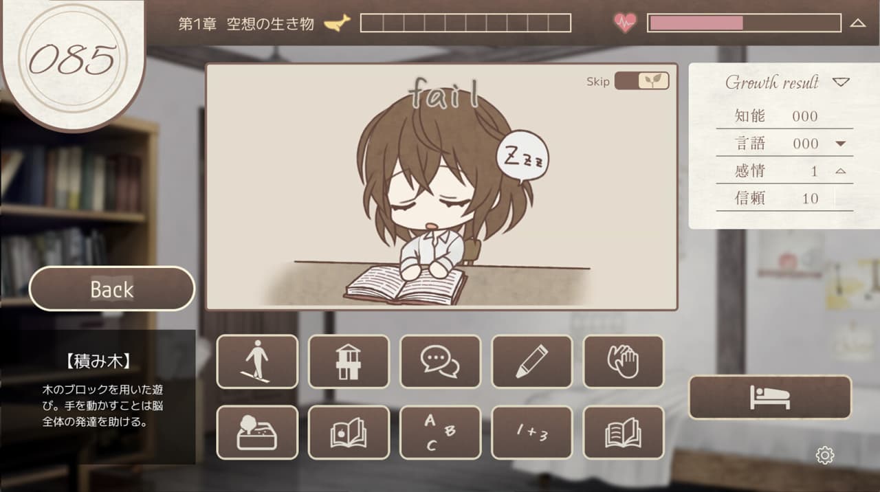 GROWTH EXPERIMENT — симулятор воспитания, в котором главной задачей становится восстановление утраченных когнитивных способностей девушки по имени Хлоя. Протагонист оказывается в одной квартире с молодой особой, чей интеллект регрессировал, а воспоминания практически стерты. Она не понимает, кто находится рядом с ней, и не осознает своего прошлого. Весь игровой процесс построен на интеллектуальном обучении подопечной. Взаимодействие с ней сводится к попыткам стимулировать её умственную деятельность через специальные тренировки. Успешное выполнение этих заданий напрямую влияет на прогресс и открывает доступ к фрагментам основного сюжетного повествования, представленного в формате визуальной новеллы.