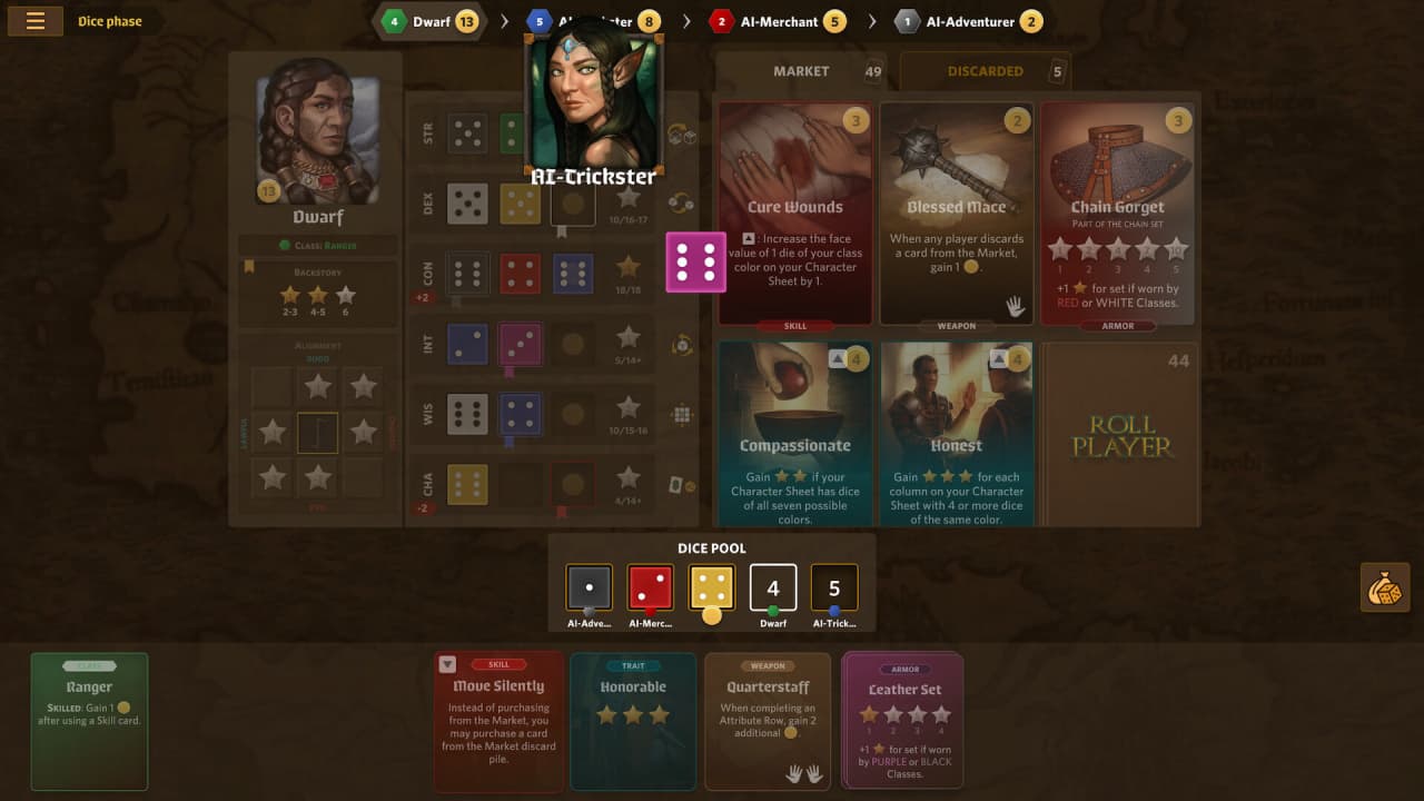 Roll Player - The Board Game v Build 14455618 Новая версия Полная версия Последняя Дата выхода 20 апр. 2023 Разработчик Mipmap Digital Жанр Стратегии, RPG, Инди Очень положительные на основе 167 обзоров в Steam 90% Обновлено 3 октября 2025, 09:42 Список изменений Roll Player The Board Game — цифровая версия настольной стратегии, где нужно создать идеального протагониста для фэнтезийных приключений. Процесс начинается с формирования основы героя, включая выбор расы из доступных вариантов: люди, эльфы, гномы, орки, полурослики или драконорожденные. Дальнейшее развитие строится вокруг шести характеристик — силы, ловкости, выносливости, интеллекта, мудрости и харизмы. Их значения определяются итогами бросков кубиков, которые затем размещаются на специальном листе персонажа, формируя его уникальные сильные и слабые стороны. Главная задача — набрать максимальное количество Звезд Репутации. Эти очки начисляются за выполнение целей, указанных на картах Класса, Предыстории и Мировоззрения. Каждая карточка задает свои условия: например, Класс требует определенных показателей атрибутов, а Предыстория — специфического расположения костей. На местном Рынке можно купить доспехи, оружие, навыки и черты характера. Эти предметы не только улучшают искателя приключений, но и приносят дополнительные Звезды Репутации. Проект Roll Player - The Board Game предлагает механики манипуляции результатами бросков, позволяя изменять значения дайсов при помощи действий, связанных с параметрами. Создание прославленного героя через испытания и выбор: Определение расы и класса, таких как Паладин или Варвар, закладывает фундамент для стартовых бонусов и способностей. Карты предыстории, например Мятежный Аристократ, и мировоззрения добавляют персонажу глубины и ставят уникальные задачи. Посещение Рынка позволяет обзавестись мощной экипировкой, сбор комплектов которой вознаграждается победными очками. Распределение кубиков по рядам атрибутов, будь то Сила или Интеллект, открывает тактические возможности для управления результатами. Скачать торрент Скриншоты Показать больше Видео из игры Скачать БЕЗ торрента прямая ссылка через uTorria Альтернативные раздачи Прямые ссылки Облачные хранилища v Build 14455618 74 МБ Показать Системные требования ОС: Windows 7, 8, 10 (64 бита) Процессор: dual Core 1.6 ГГц Оперативная память: 2 ГБ Видеокарта: 1 ГБ Место на диске: 600 МБ Головоломка, Фэнтези, Казуальная, Настольная игра, Логика, Карточная игра, Кастомизация персонажа, Пошаговые стратегии, Пошаговая тактика, Обучение, Игры в 2D, Разделение на классы