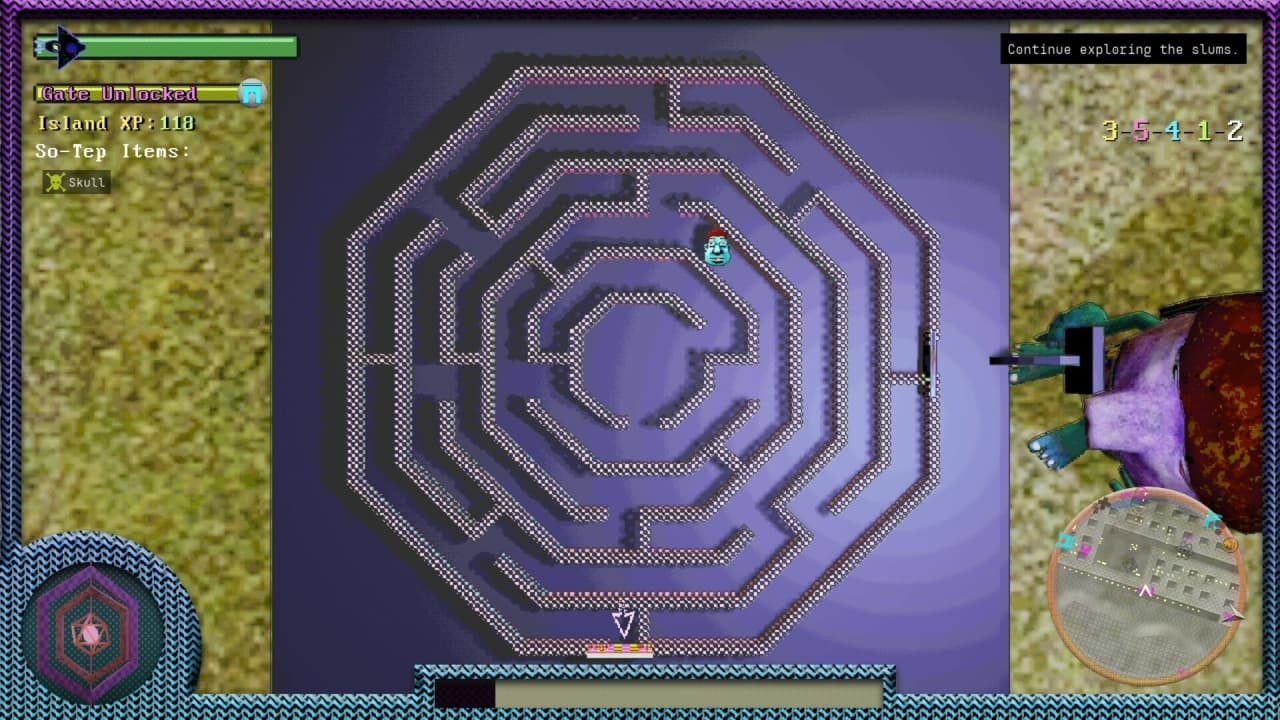 Изучение мира является ключевым элементом повествования, ведь город состоит из 5 самобытных районов, наполненных цифровыми жителями и необычной инфраструктурой. Взаимодействие с эксцентричными личностями раскрывает детали их безрадостного существования и помогает протагонисту в его стремлении к свободе. Чтобы противостоять угнетателям в Escape From Lavender Island, главному герою необходимо: