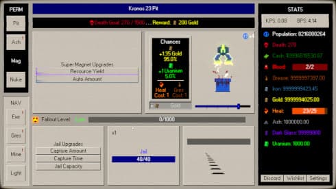 Дальнейшее развитие открывает доступ к разнообразным средствам, включая мины, сложные механические ловушки и автоматизированные машины, чья эффективность возрастает с каждым новым улучшением. Глобальная цель заключается в планомерном сокращении населения планеты с 8 миллиардов до абсолютного нуля. Проект Execute даже предоставляет возможность персонализировать место для расправ, например, дав собственное имя яме для казней, что добавляет происходящему нотку черного юмора. Апогеем разрушительной мощи становятся ядерные боеголовки, применение которых знаменует финальные стадии истребления цивилизации. Этот гротескный симулятор предлагает уникальный взгляд на концепцию уничтожения в жуткой ироничной манере.