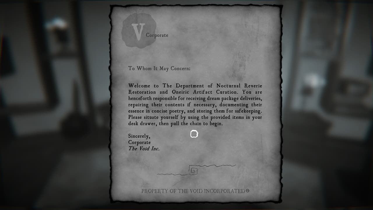 The Dream Collector v Build 19976539 Новая версия Полная версия Последняя Дата выхода 1 сен. 2025 Разработчик Crump Жанр Симуляторы Обновлено 6 октября 2025, 10:22 Список изменений The Dream Collector — сюрреалистичное погружение в обязанности сотрудника таинственной корпорации The Void Incorporated, где протагонисту отведена роль хранителя сновидений. Работая в Департаменте восстановления ночных грез и курирования онейрических артефактов, новоиспеченный коллекционер принимает на себя ответственность за поддержание целостности реальности. Основная деятельность разворачивается на уединенном рабочем месте, оборудованном всем необходимым для кропотливого труда: от рабочего стола до специального радиоприемника, транслирующего оригинальную музыку. Процесс начинается с простого действия — достаточно потянуть за цепь, чтобы запустить получение посылок со снами. Игровой процесс представляет собой медитативную последовательность действий, требующих внимания и творческого подхода. Каждое полученное сновидение, представленное в виде разбитой скульптуры, необходимо тщательно восстановить. После того как артефакт собран воедино, наступает этап его документирования. Сущность каждого сна должна быть запечатлена в форме лаконичного стихотворения, что добавляет в механику элемент поэтического осмысления. Завершив реставрацию и каталогизацию, The Dream Collector отправляет восстановленные грезы на хранение, выполняя свою тихую, но критически важную миссию. Эта необычная симуляция сочетает в себе мрачную готическую атмосферу с расслабляющим и уютным игровым опытом, создавая уникальное чувство изоляции и значимости. Стилистически проект выполнен в мрачных тонах, а повествование от первого лица усиливает эффект погружения в необычную должность. Игроку предстоит столкнуться с философскими откровениями, которые могут быть как комичными, так и пугающими. Скачать торрент Скриншоты Видео из игры Скачать The Dream Collector Тип релиза Пиратка (Таблетка: Не требуется) Версия v Build 19976539 (Полная) Последняя Размер 1.31 ГБ Интерфейс Английский Озвучка Отсутствует Установка: Скачать .torrent торрент файл Скачать БЕЗ торрента прямая ссылка через uTorria Альтернативные раздачи Прямые ссылки Облачные хранилища v Build 19976539 1.5 ГБ Показать Системные требования ОС: Windows 10 (64-bit) Процессор: AMD Ryzen 3 3200g / Intel i5-7400 Оперативная память: 8 ГБ Видеокарта: AMD Radeon vega 8 / Nvidia GTX 1050 ATI Место на диске: 5 ГБ Казуальная, Коллектатон, Строительство, Сюрреалистичная, Атмосферная, Расслабляющая, Мрачная, От первого лица, Головоломка, Стилизация, Чёрный юмор, Тёмное фэнтези, Фэнтези, Готика, Научная фантастика, Игры с геймпадом