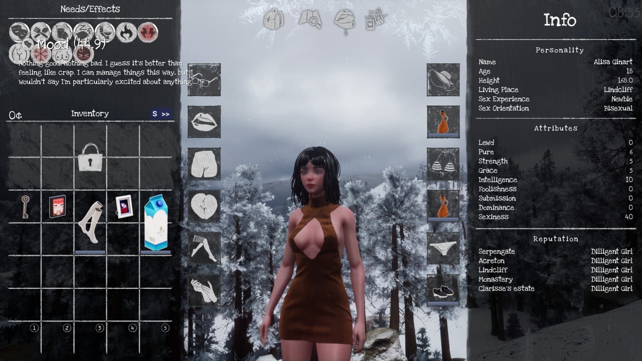 Проект базируется на ролевых элементах, где каждое принятое решение имеет далеко идущие последствия для развития сюжета. В Deluded реализован комплексный подход к выживанию, включающий системы болезней и болевых ощущений. Геймерам необходимо следить за состоянием здоровья героини, развивать ее атрибуты, учитывать влияние погоды, времени суток и финансового положения. Изучение доступных локаций площадью 3 на 3 километра усложняется тем, что неигровые персонажи живут по собственному расписанию. Взаимодействие с другими девушками, выстраивание с ними доверительных или интимных отношений становится важным аспектом для продвижения по разветвленным квестам и получения уникальных преимуществ в этом враждебном мире.
