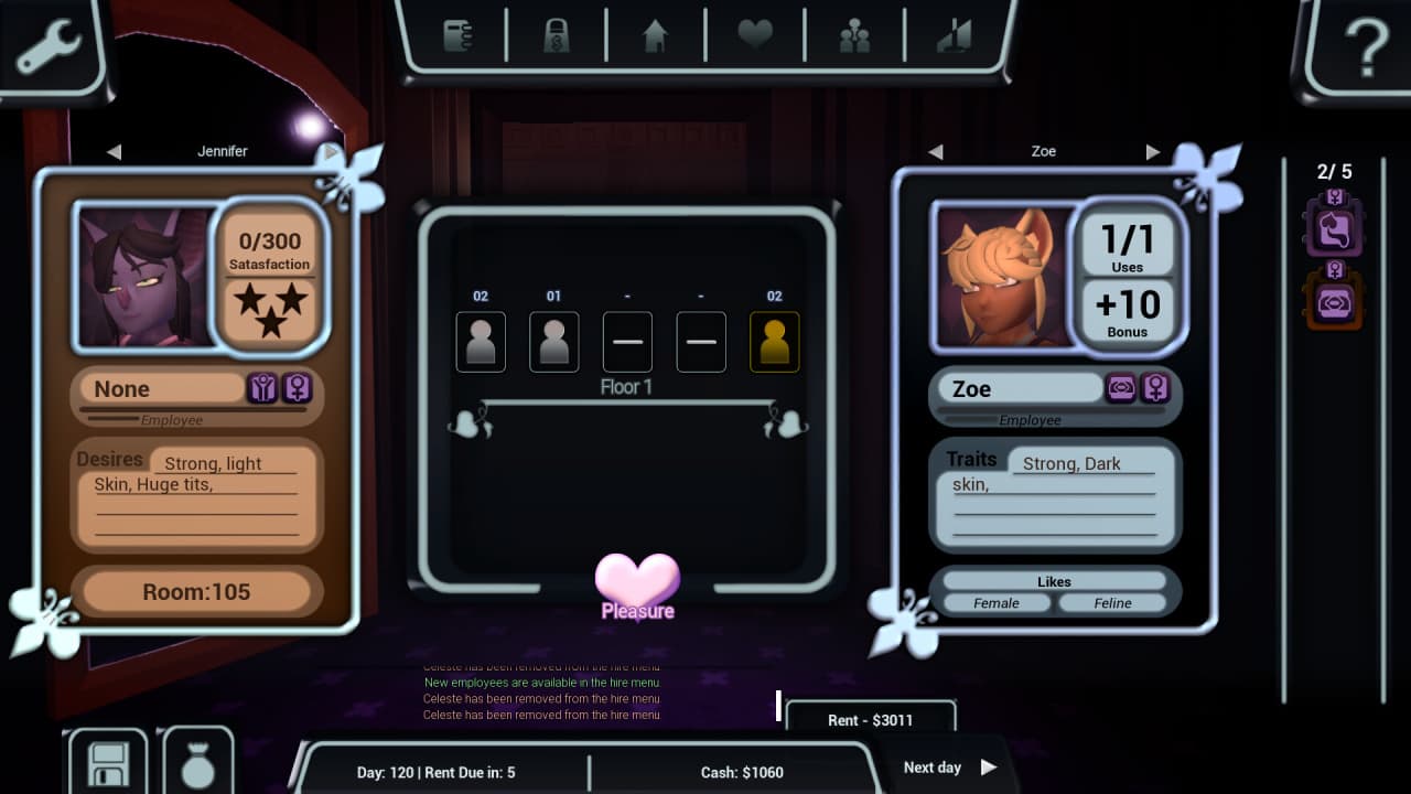 Extended Stay RUS v 1.4.3 Новая версия Полная версия Последняя Дата выхода 15 июн. 2021 Разработчик Hearts Club Жанр Стратегии, Симуляторы, Аниме, Инди Смешанные на основе 35 обзоров в Steam 51% Обновлено 15 октября 2025, 11:00 Список изменений Extended Stay — симулятор управления, в котором успех заведения напрямую зависит от удовлетворения желаний его посетителей. Игровой процесс построен вокруг менеджмента необычного борделя, населенного девушками-монстрами. Каждое взаимодействие с клиентами приносит доход, необходимый для поддержания и расширения бизнеса, открывая доступ к новым сексуальным сценам, которые представлены с видом от первого лица, погружая в происходящее. Главной задачей становится грамотное управление персоналом и ресурсами для привлечения более состоятельной клиентуры. Развитие заведения в Extended Stay требует постоянного расширения штата сотрудников и покупки для них разнообразных костюмов и аксессуаров. Сотрудницы со временем набираются опыта, улучшая свои навыки и становясь более искусными в своем деле. Интересной механикой является система влечения между работницами: когда симпатия достигает определенного уровня, их можно объединить в пару для совместной сцены. Проект предлагает 12 уникальных рас девушек-монстров, что вносит значительное разнообразие в геймплей и открывает новые стратегические возможности для управления борделем. Каждый гость и любая нанимаемая сотрудница генерируются случайным образом, обладая уникальным набором черт от внешности до личных предпочтений. Эта система случайной генерации гарантирует, что каждое новое прохождение будет отличаться от предыдущего. Пользователям предстоит нанимать персонал, подбирая девушек с определенными характеристиками для удовлетворения специфических запросов клиентов. Всего в симуляторе представлено 16 полностью интерактивных сцен, где можно контролировать скорость и движения персонажей, создавая уникальный опыт. Скачать торрент Скриншоты Показать больше Видео из игры Скачать БЕЗ торрента прямая ссылка через uTorria Альтернативные раздачи Прямые ссылки Облачные хранилища v 1.4.3 1.62 ГБ Показать Системные требования ОС: Windows 7, 8, 10 (64-bit) Процессор: Intel Core i3 2.5 ГГц / AMD Phenom ii 2.6 ГГц Оперативная память: 4 ГБ Видеокарта: AMD 5570 / Nvidia 450 / Intel integrated Graphics 530 Место на диске: 953 МБ Нагота, Тайм-менеджмент, Кастомизация персонажа, Головоломка, Экономика, Менеджмент, Обучение, Милая, Казуальная, Расслабляющая, Мультипликация, Цветастая, Стилизация
